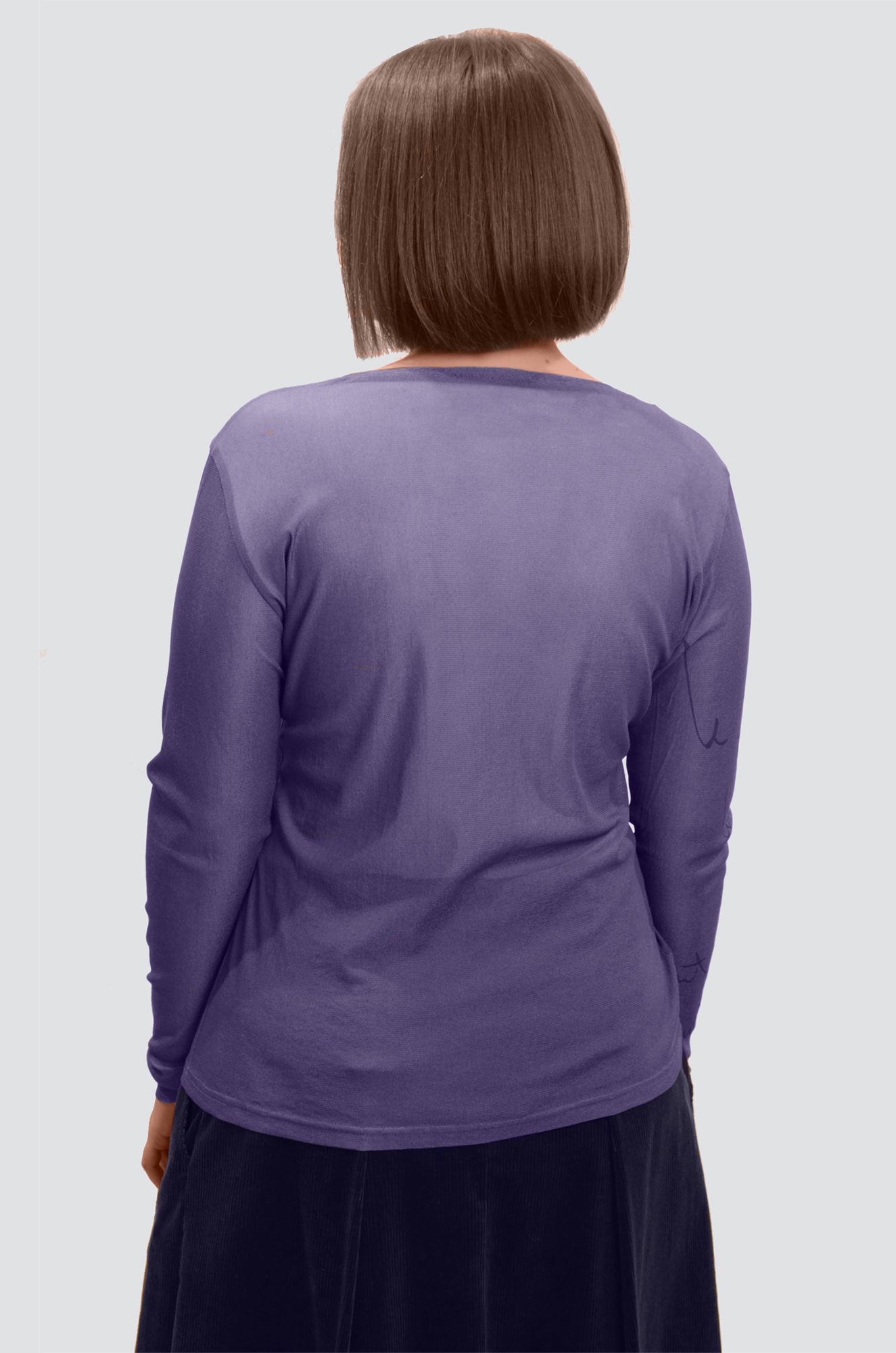 Блуза с авторским принтом, рукавом 3/8, круглым вырезом горловины, накладным карманом, фигурным низом.