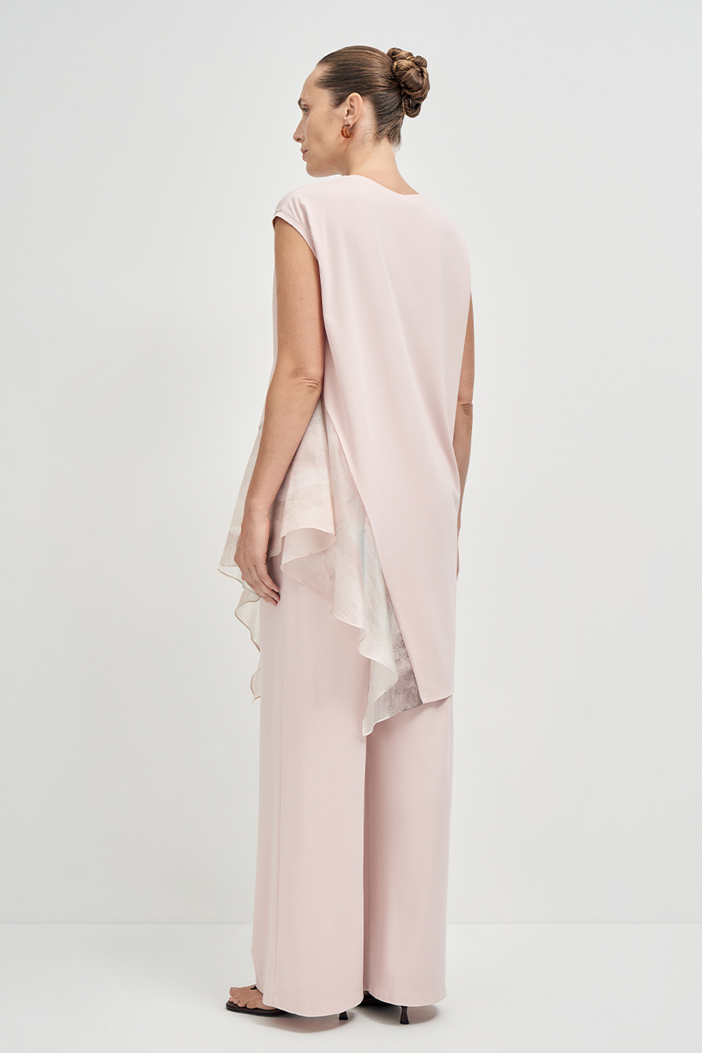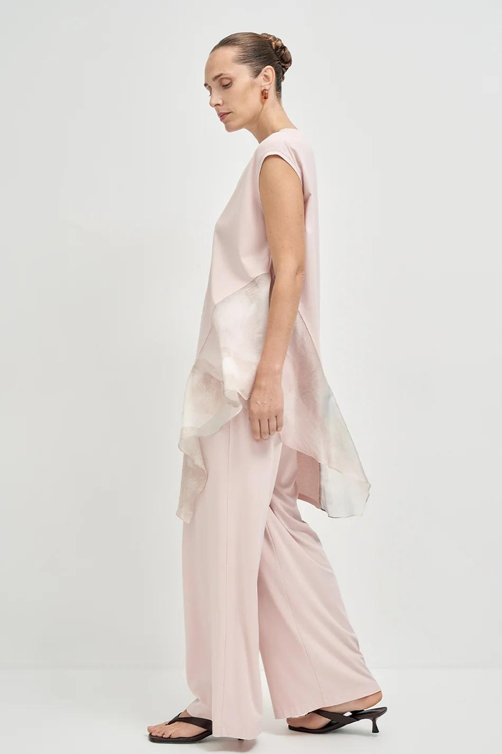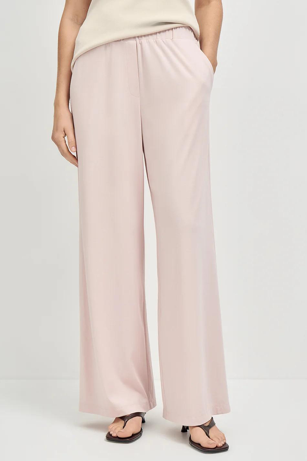 Брюки свободного кроя из итальянского трикотажа на поясе-резинке. Выполнены из мерсеризованной вискозы, созданной по специальной технологии на одной из ведущих итальянских фабрик. Ткань легкая, пластичная и тактильная, благодаря чему модель комфортна в носке и сохраняет элегантный вид.