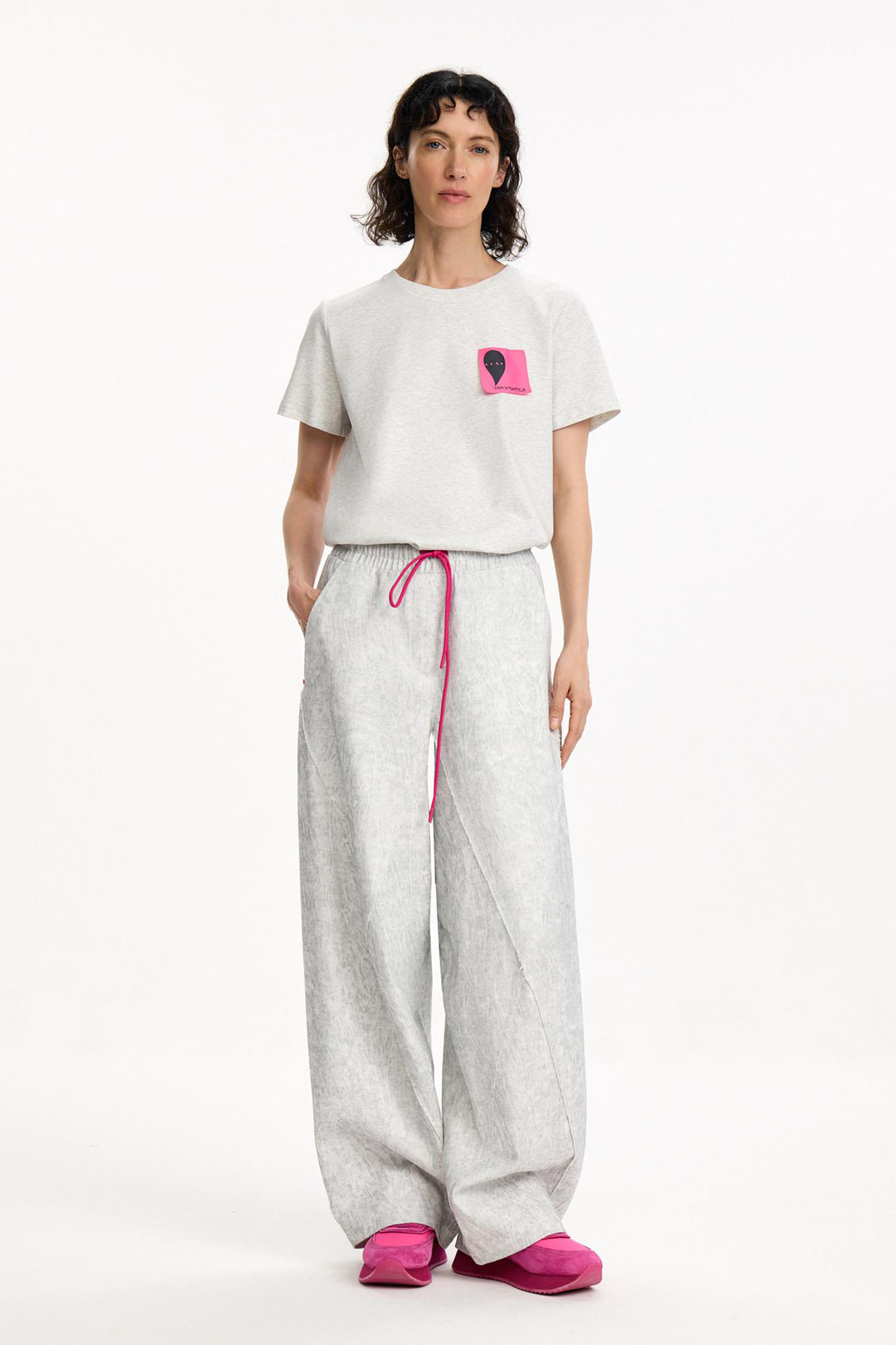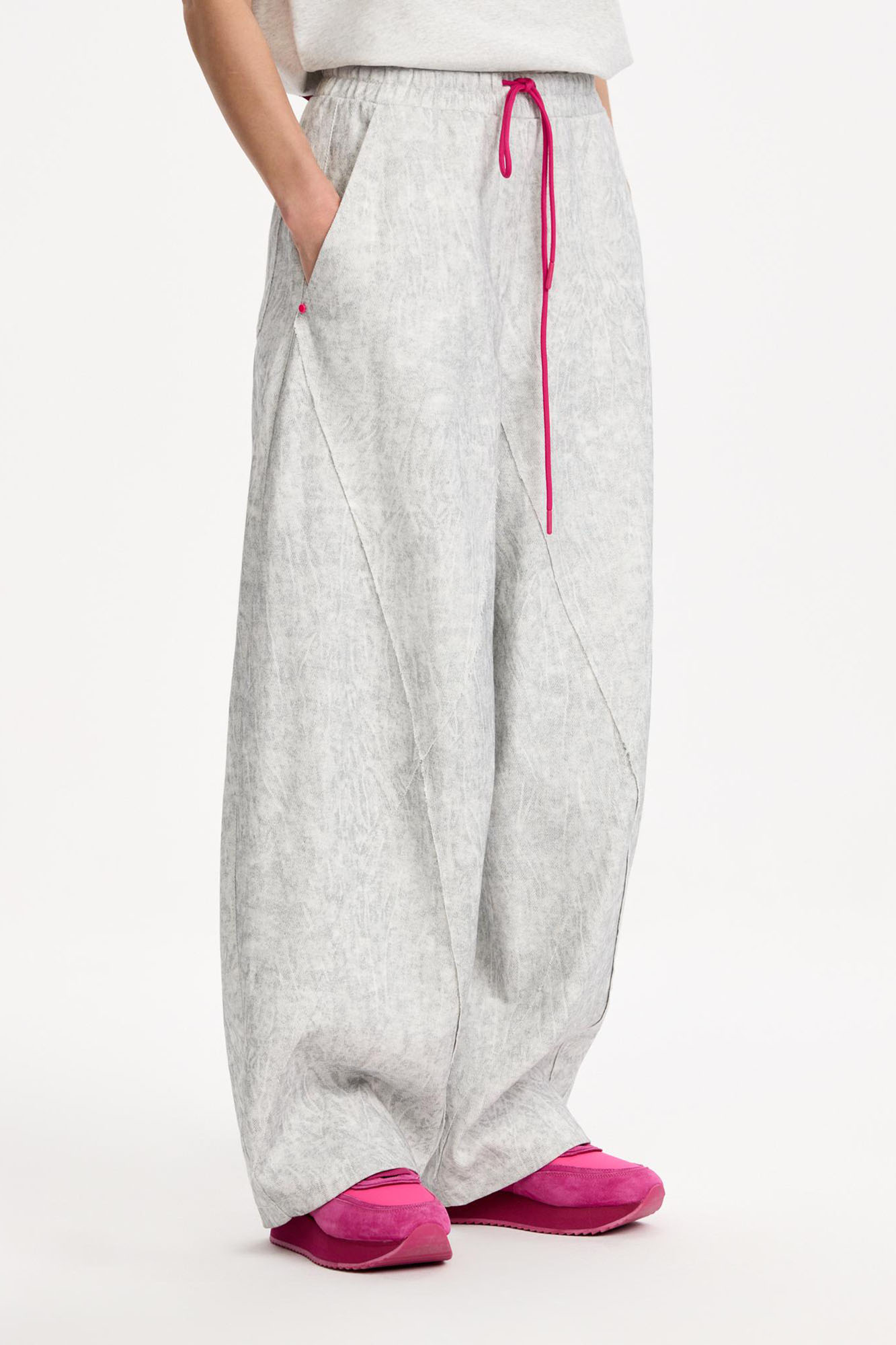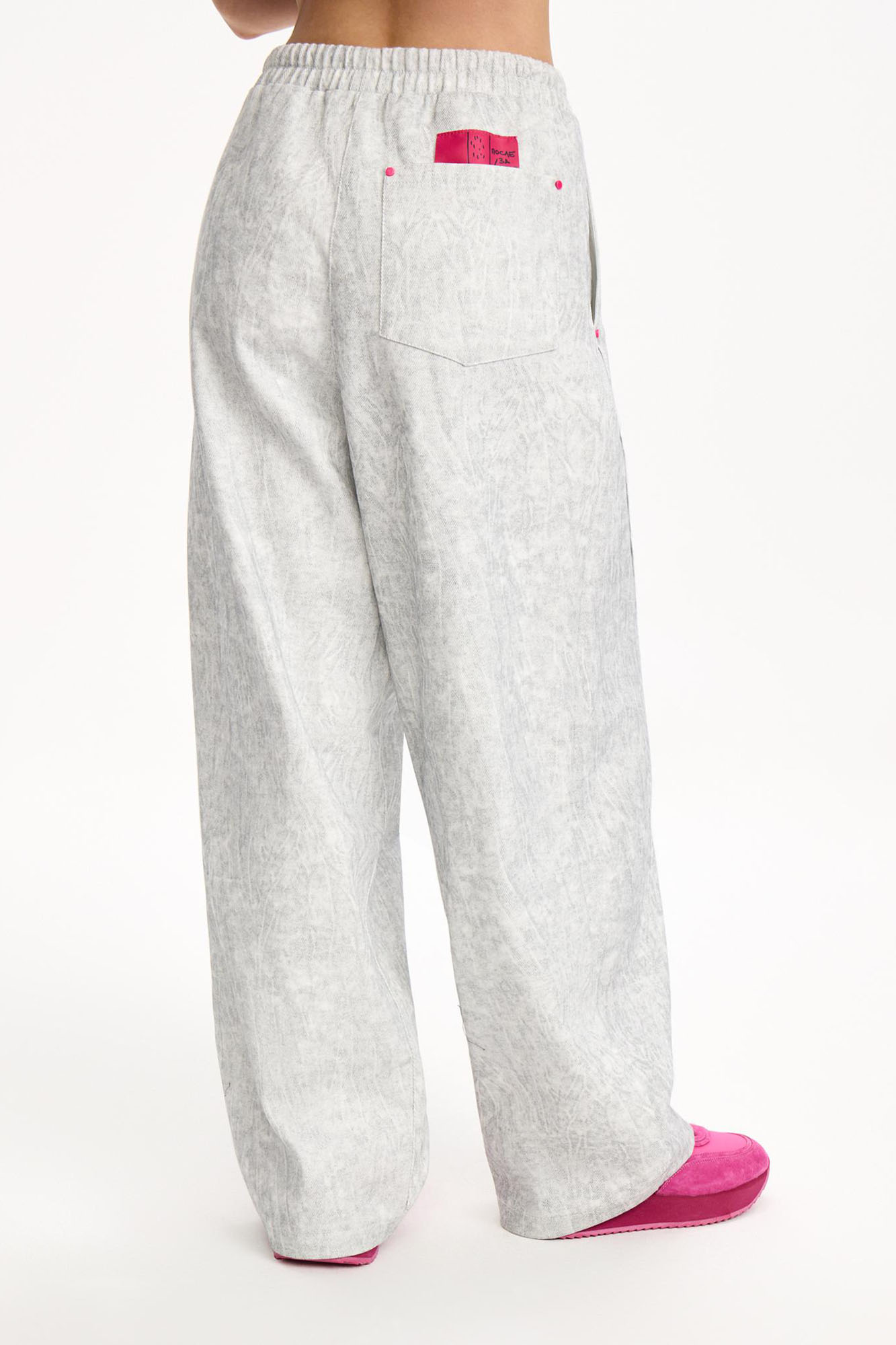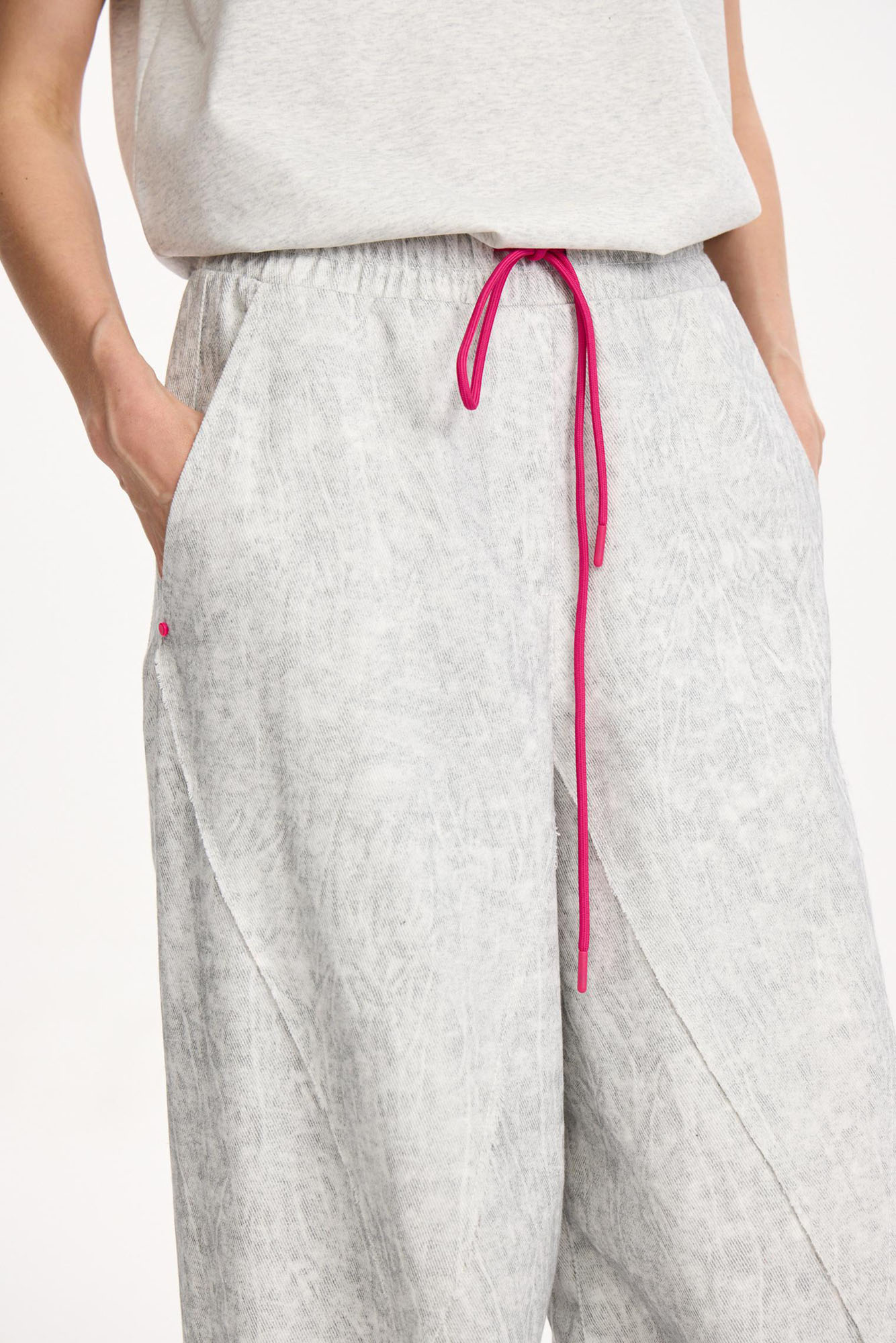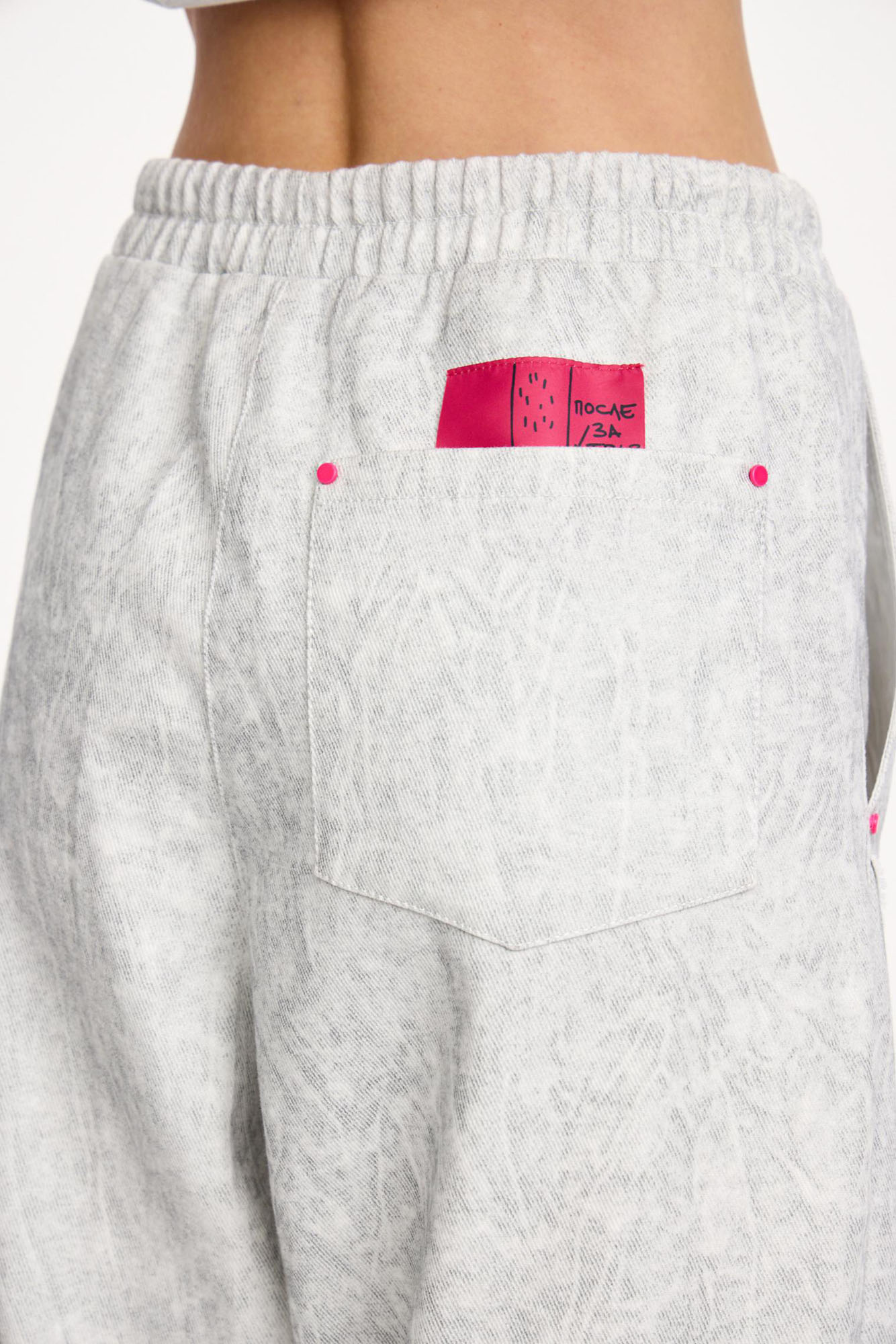 Брюки из денима необычной варки. Брюки оригинального широкого кроя с крестообразными резами на передних половинках брюк.