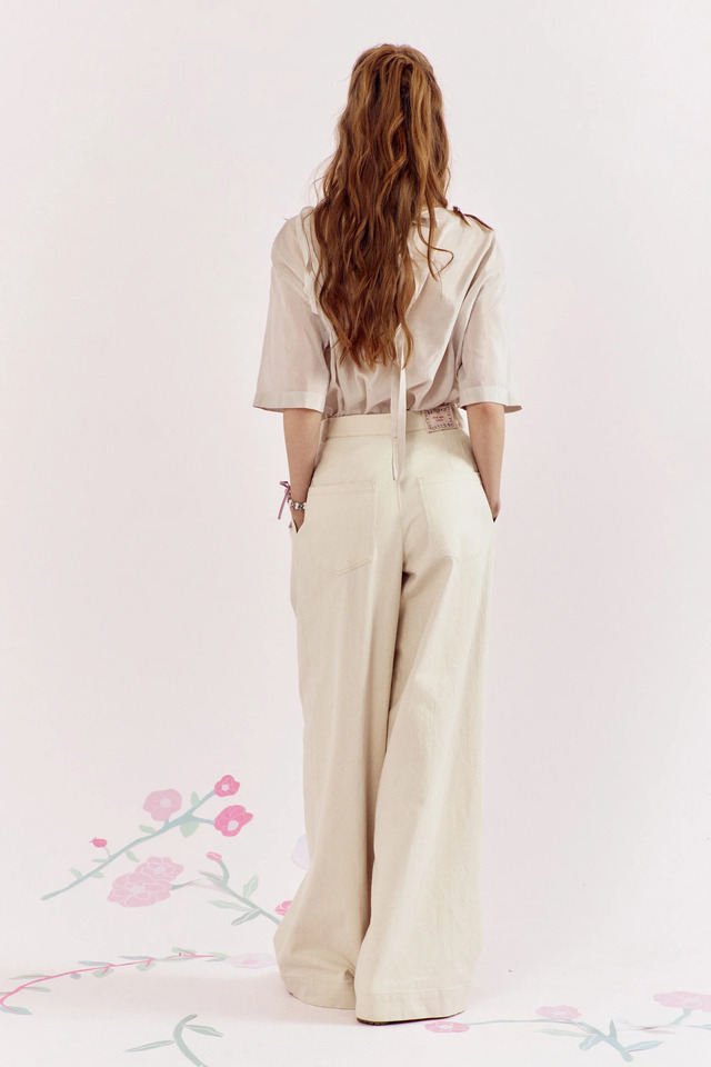 Стильные прямые свободные брюки. Пояс притачной, застегивающийся на пуговицу. Модель дополнена врезными боковыми карманами.