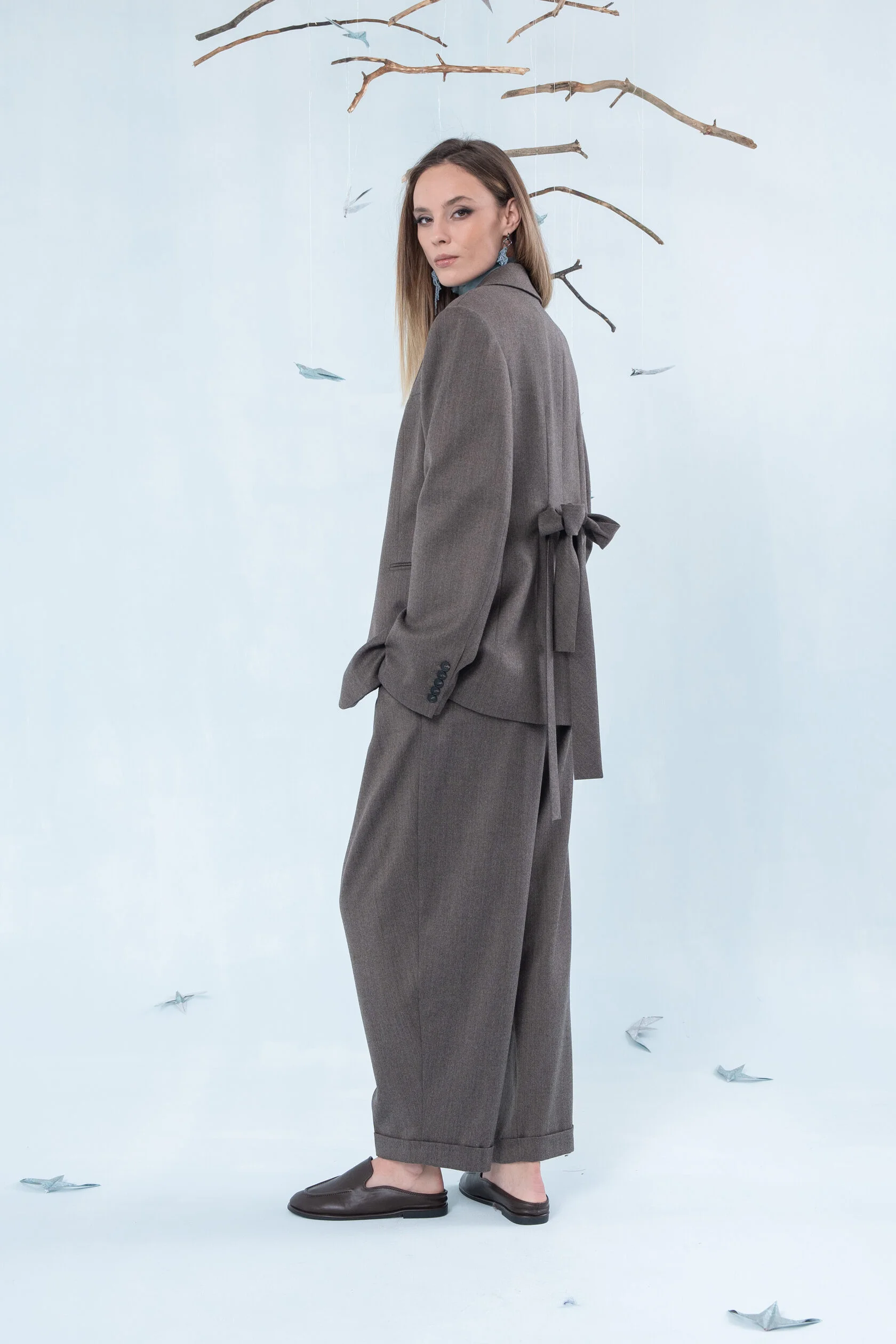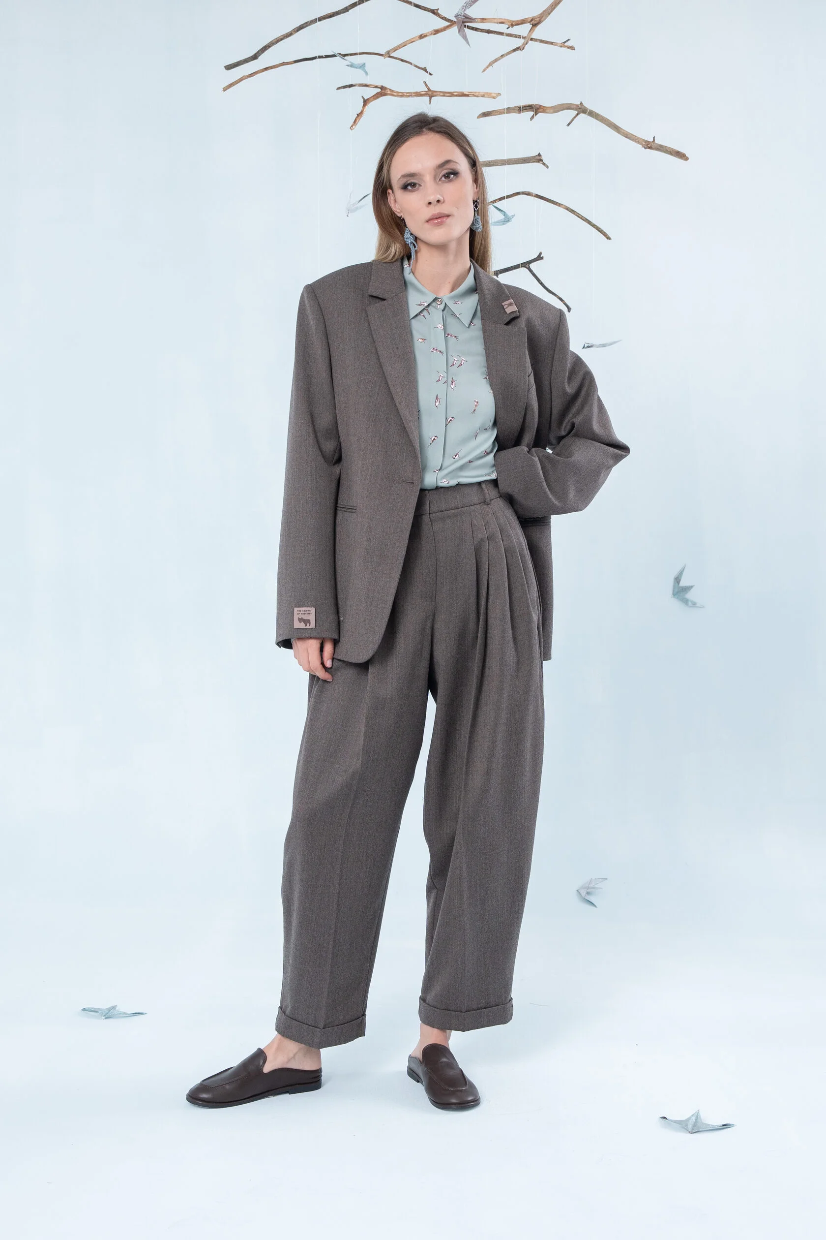 Устильные комфортиные брюки из шерсти пепельно-шоколадного цвета.
