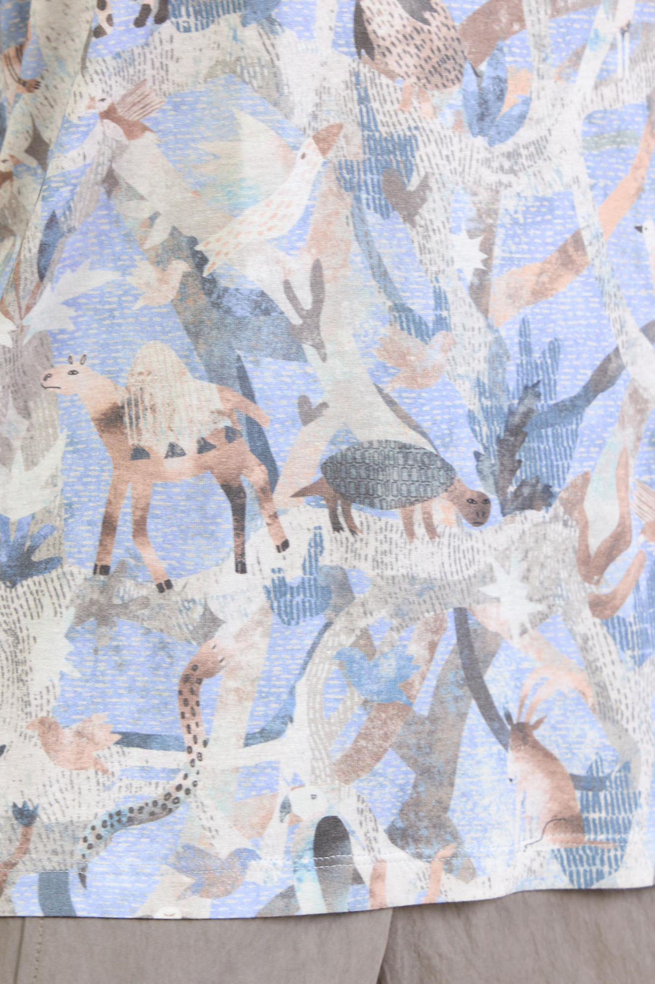 Базовая футболка с небазовым принтом. Модель из вискозной струящейся кулирки оформлена цельнокроенными рукавами. Идеально на каждый день.