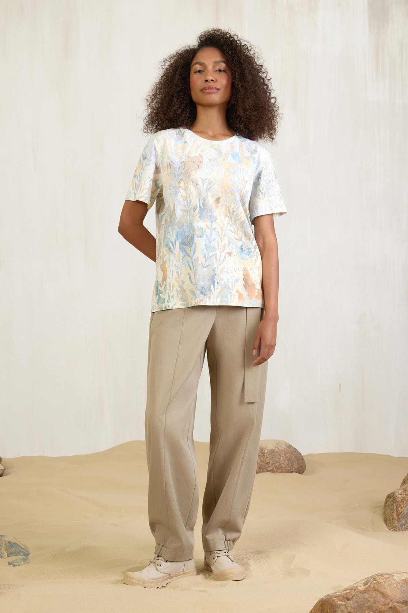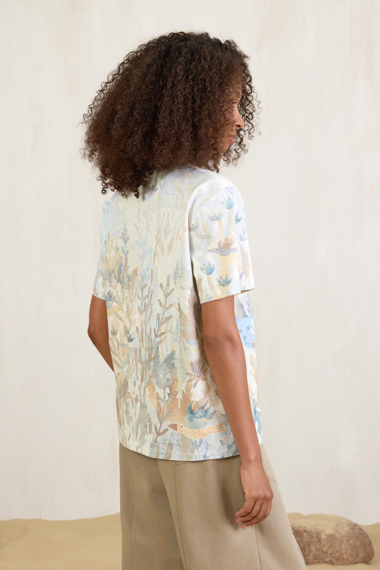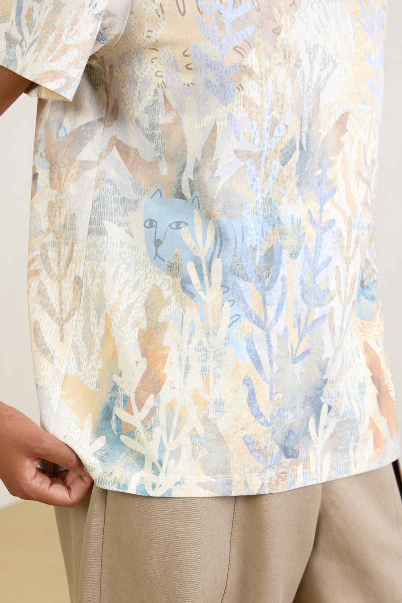 Базовая футболка с небазовым принтом - то, что нужно на каждый день или чтобы создать позитивное настроение. Модель среднего объема с принтом в нежной кофейно-голубой гамме с причудливыми растениями и животными Сокотры. Базовый трикотаж, проверенный временем, хорошо ведет себя и в носке, и в уходе.