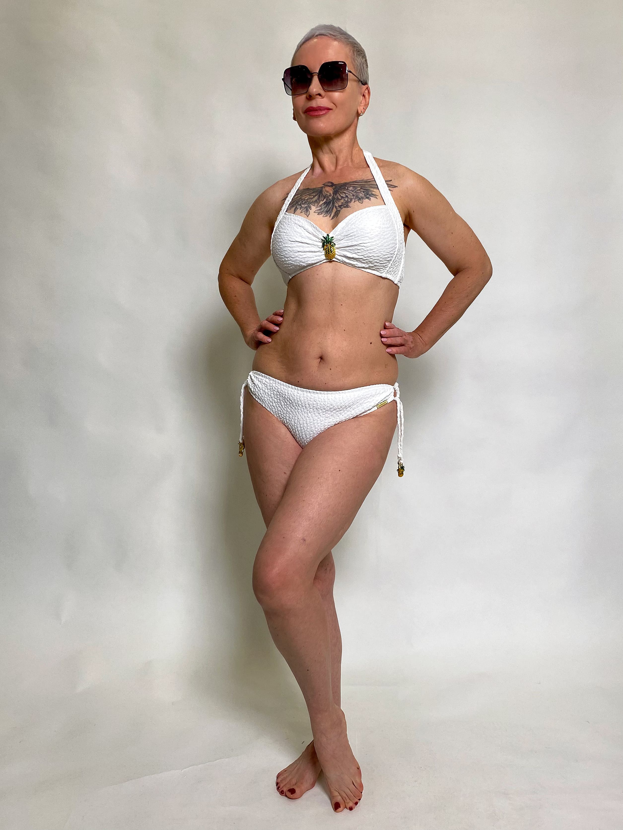 Раздельный купальник немецкого бренда Watercult. Текстурированный эластичный плотно прилегающий к телу материал обеспечивает максимальный комфорт. Ткань прочная и эластичная. Бюстгальтер-топ с завязками на шее и спинке. Купальник укомплектован плавками со средней посадкой и плотным прилеганием к телу.
