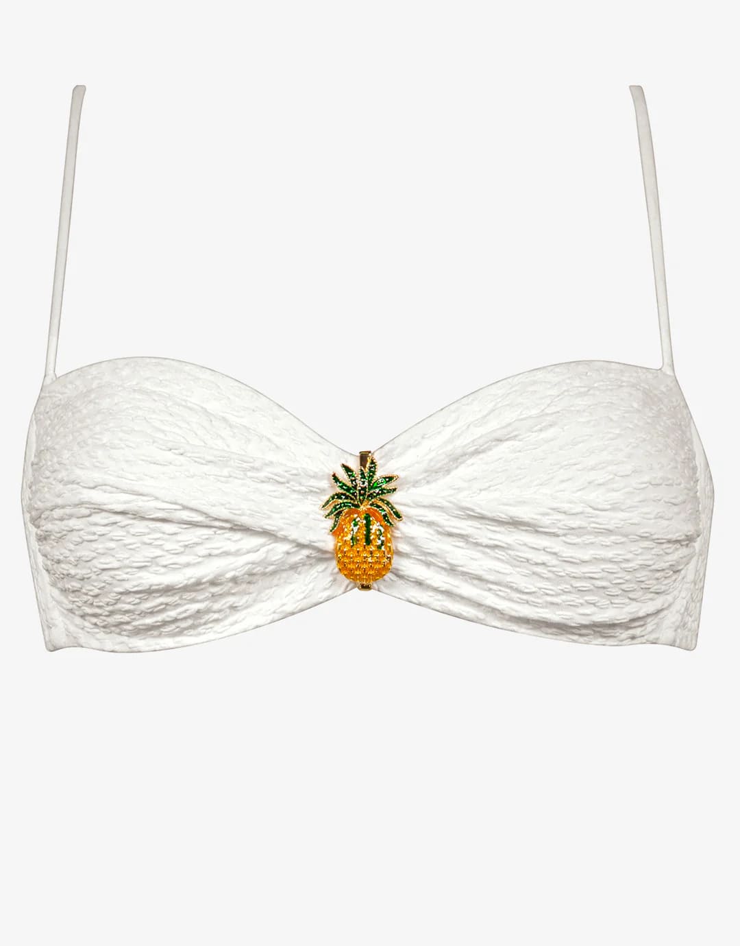 Раздельный купальник немецкого бренда Watercult. Текстурированный эластичный плотно прилегающий к телу материал обеспечивает максимальный комфорт. Ткань прочная и эластичная. Бюстгальтер-бандо и со съемными бретелями. Купальник укомплектован плавками со средней посадкой, плотным прилеганием к телу и завязками по бокам.