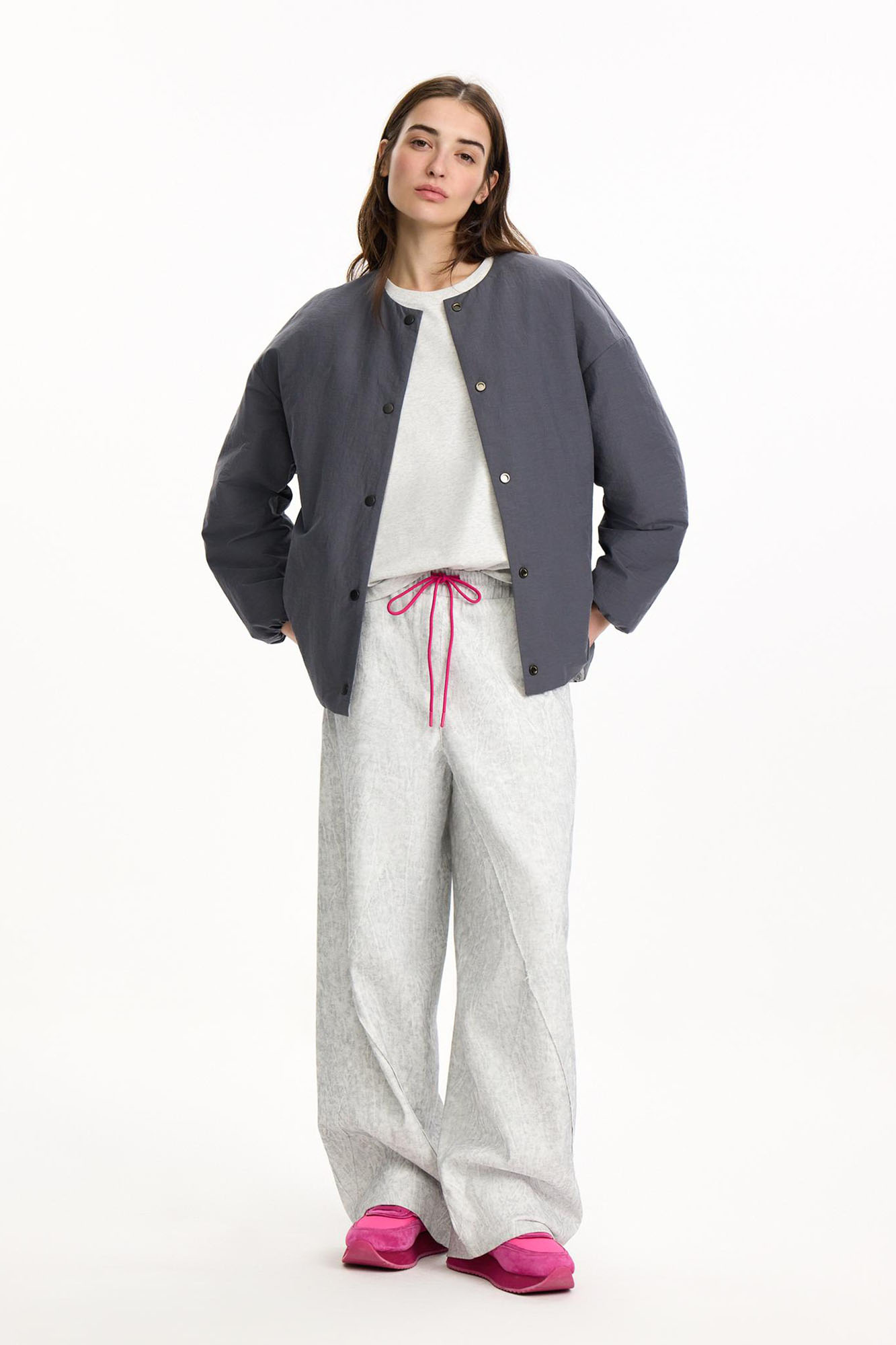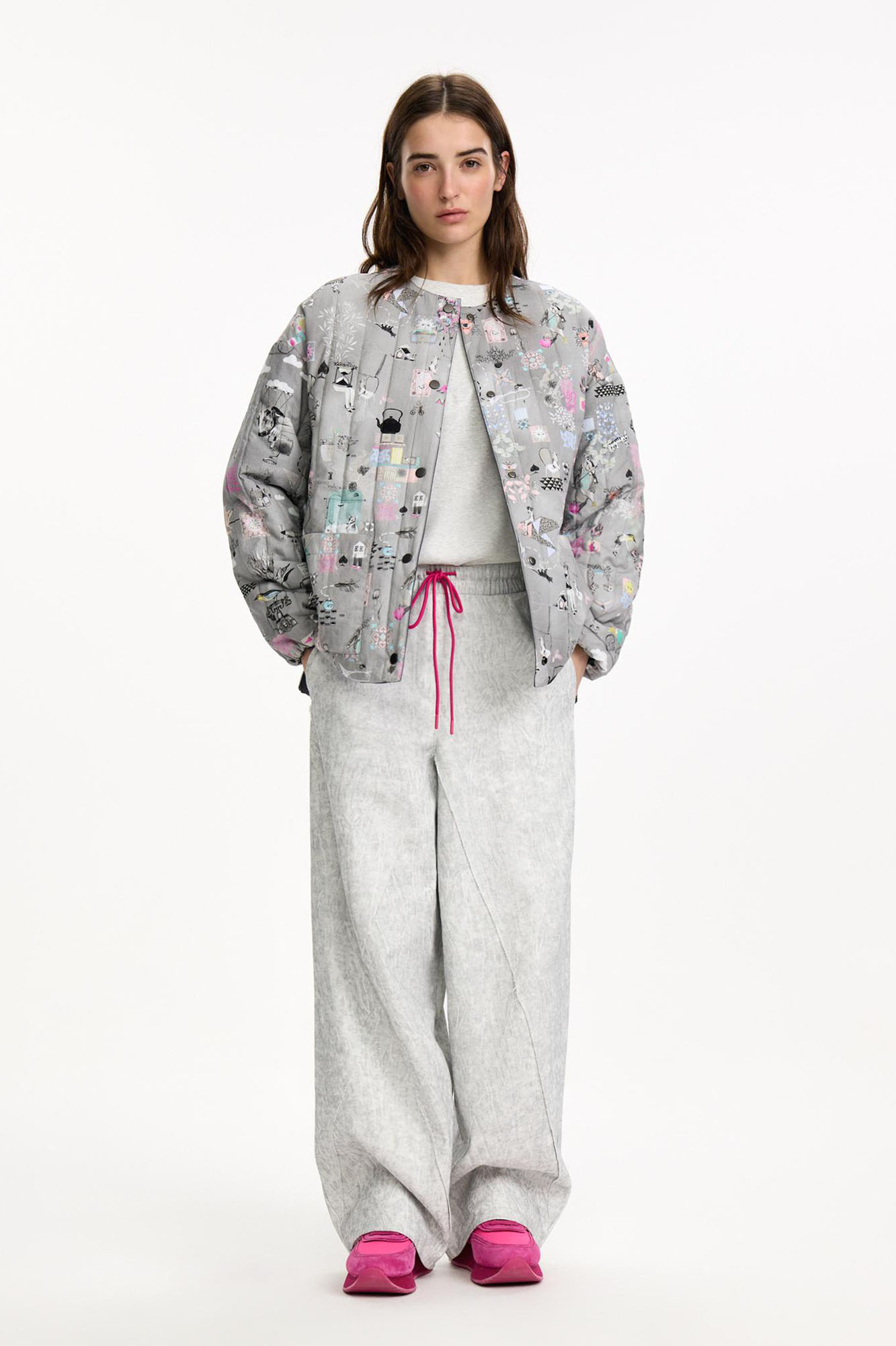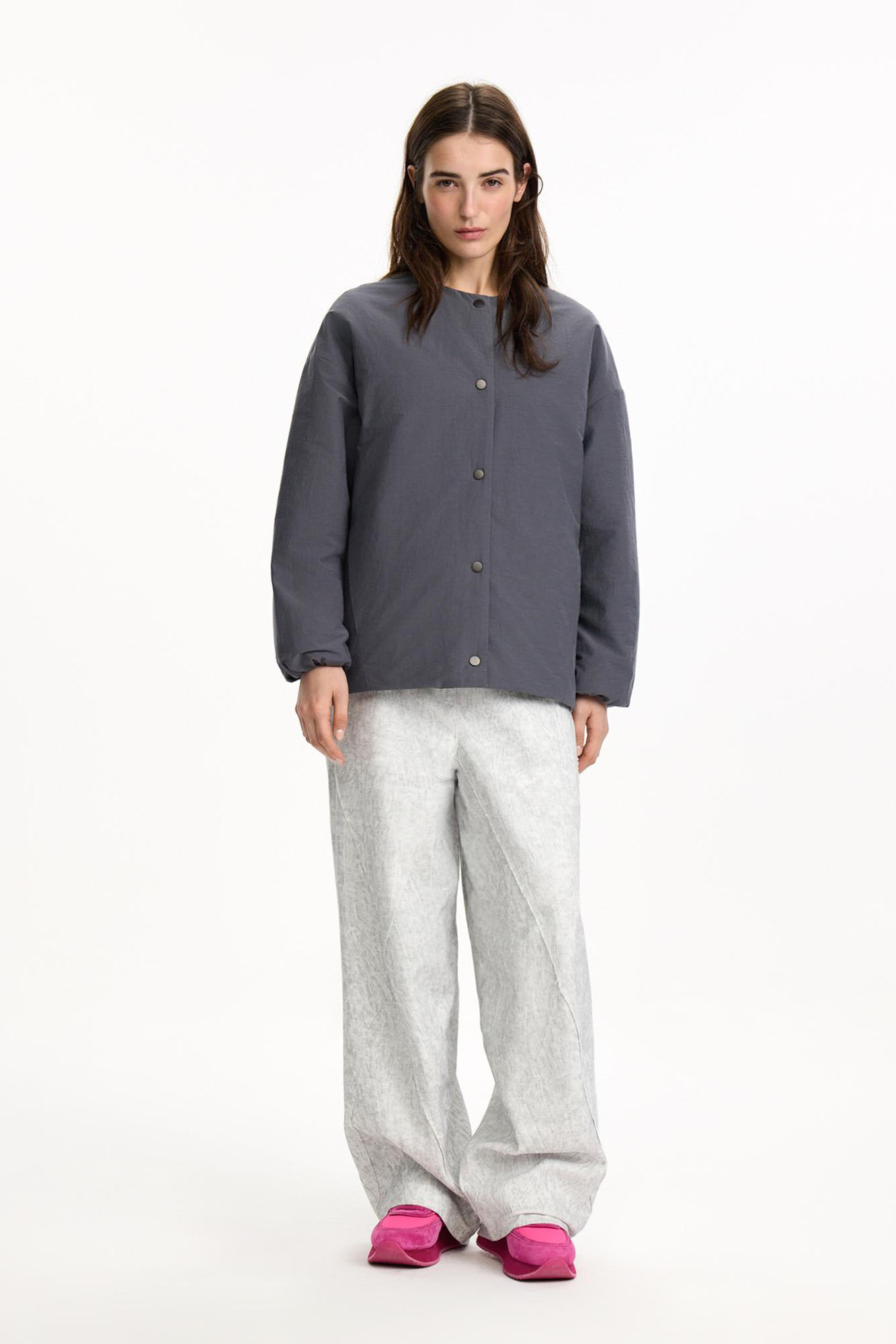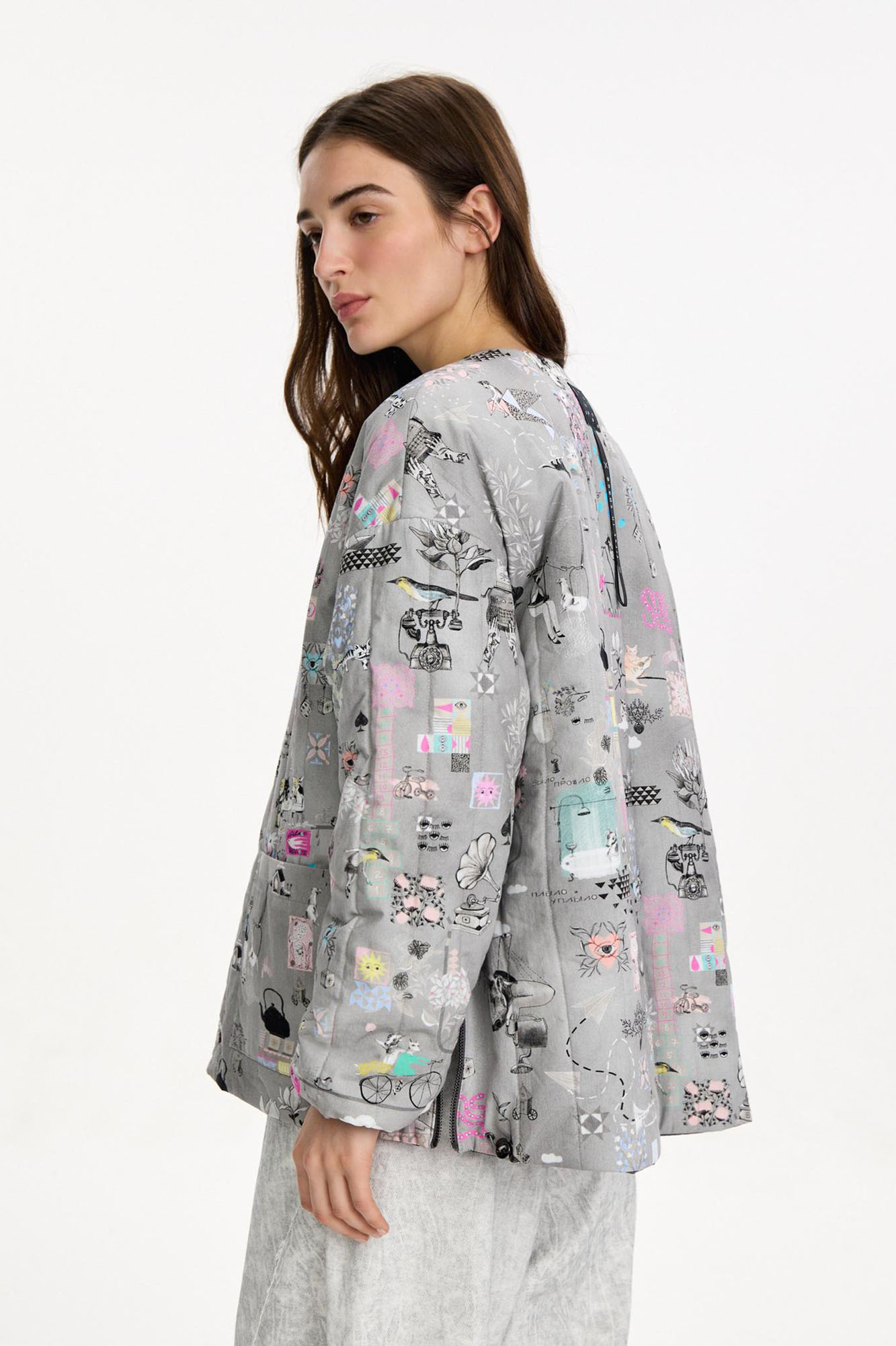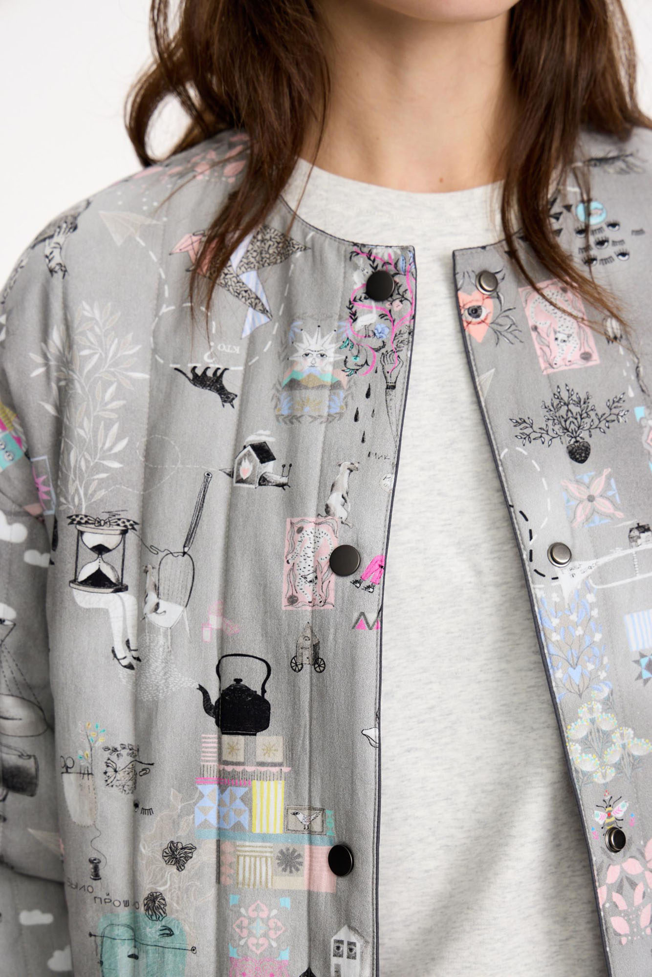 Внешняя сторона из курточной ткани с эффектом варки и легким водоотталкивающим эффектом. Внутренняя сторона выполнена из хлопка с ярким авторским принтом. Идеально сочетается со всеми вещами капсулы.