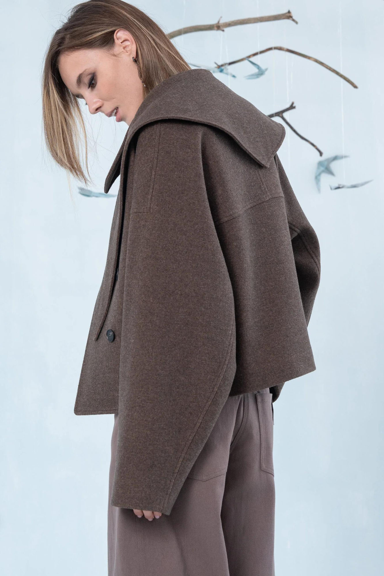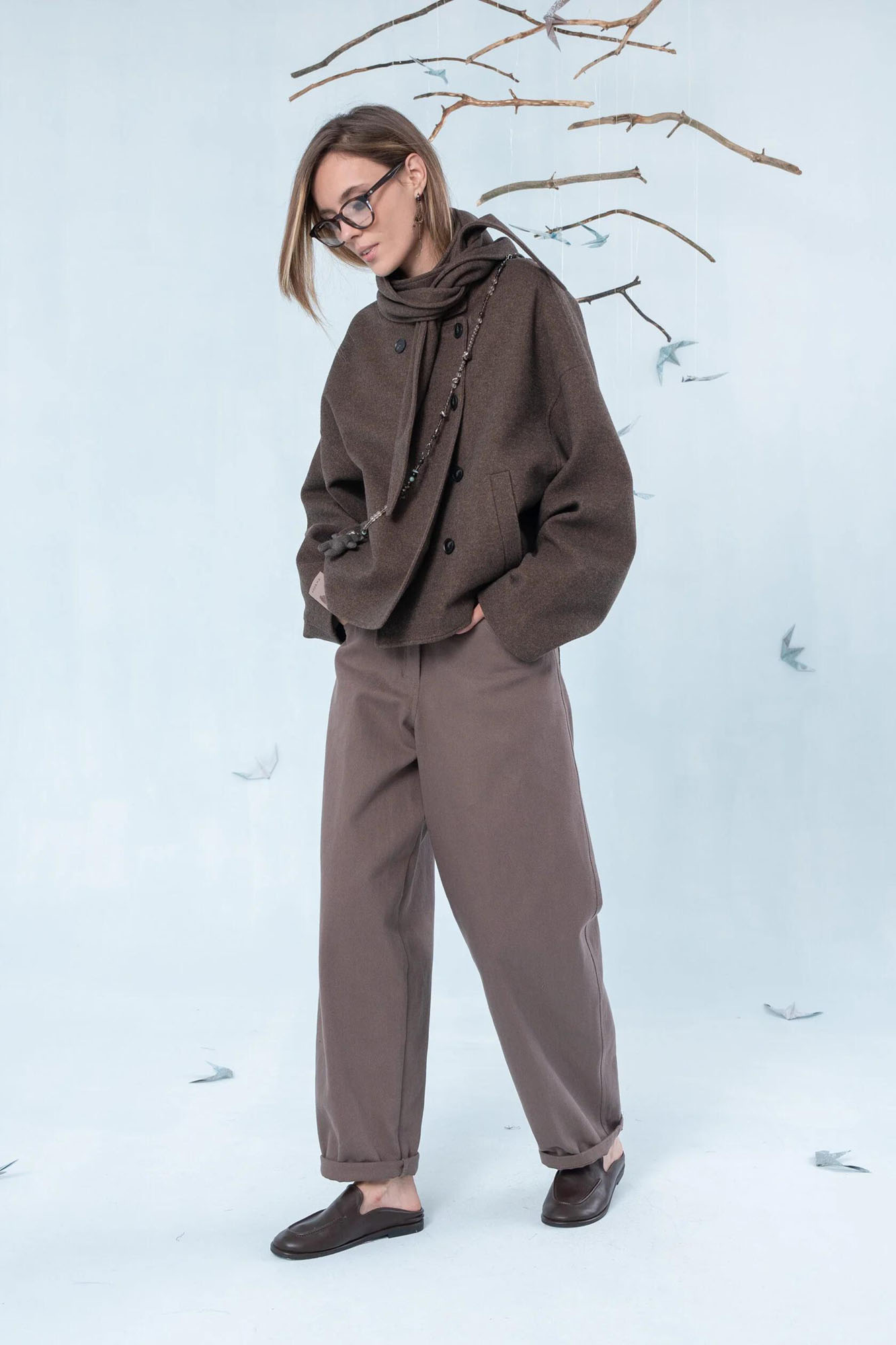 Стильная курточка актуального силуэта из мягкой полушерстяной ткани. Ткань приятная на ощупь. Трендовый цвет - шоколад. Шарфик входит в комплект.