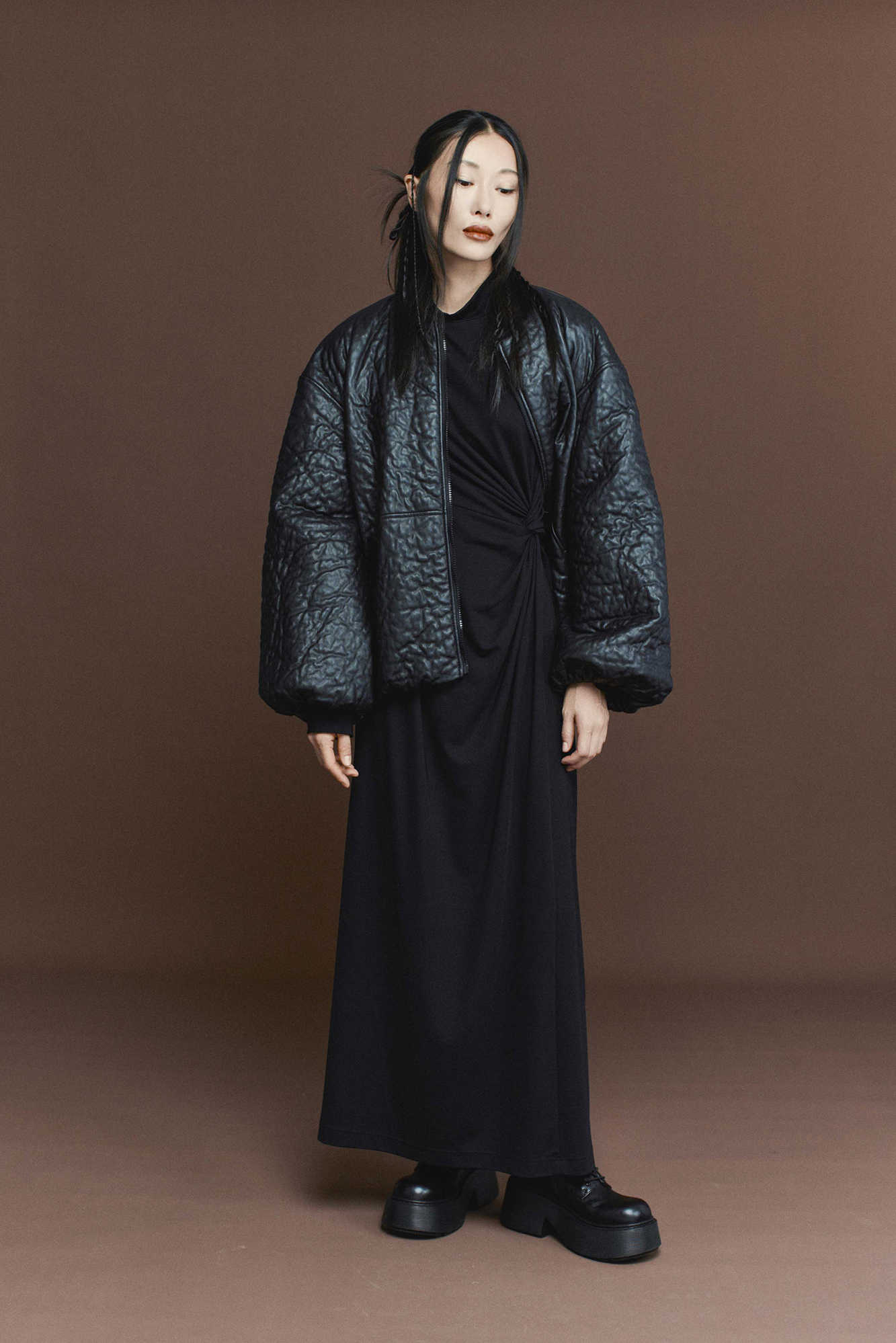 Изысканный бомбер из кожи "креш" с рельефным эффектом. Разъемная двухзамковая застежка-молния с крупными зубцами удобна в использовании, регулирует ширину шага, сохраняет тепло. Ворот классический для бомбера — трикотажная плотная резинка. Расширенные к низу рукава и низ создают мягкий колокол. На рукавах нет резинки, но подвернутый край имитирует стяжку. Прорезные функциональные карманы скрыты в декоративной строчке — фигурной строчке по переду. Спущенная линия плеча создает актуальный oversize-эффект. Втачные рукава усилены дополнительной строчкой. Нестандартный дизайнерский крой и премиальная фактура делают бомбер главным акцентом холодного сезона.
