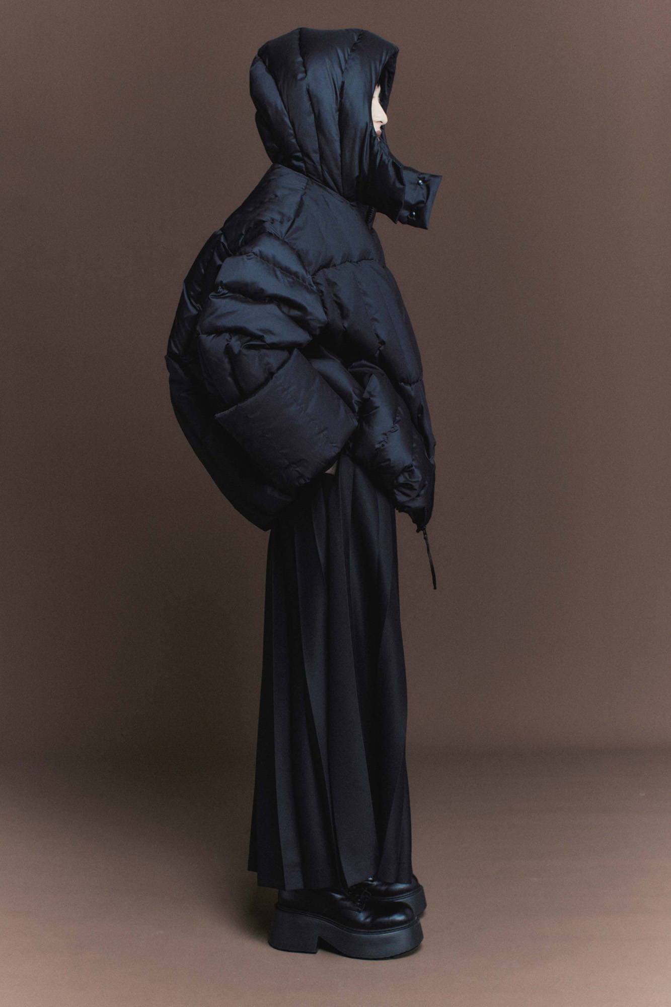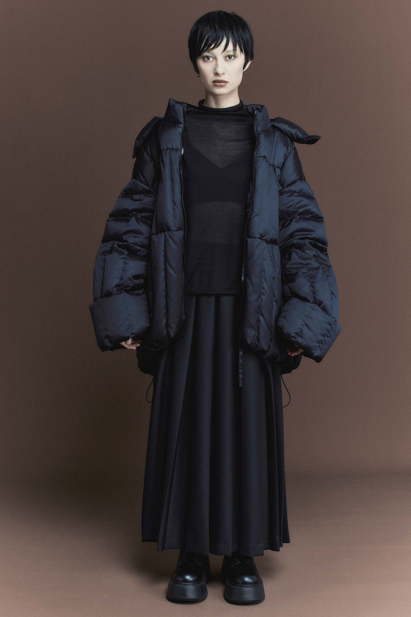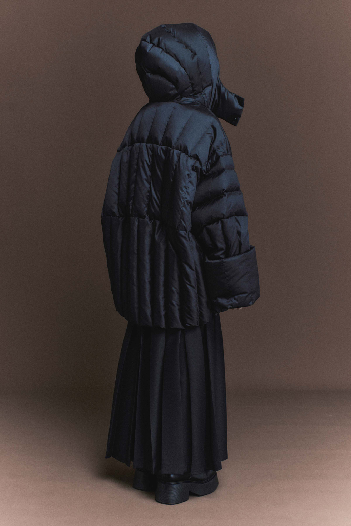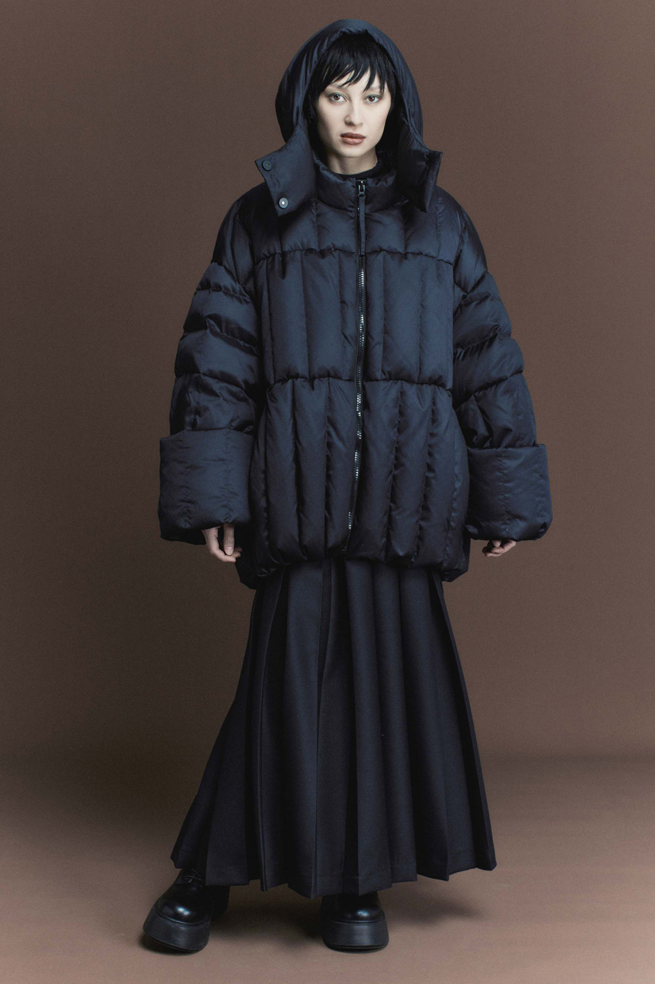 Эта куртка не просто верхняя одежда, это элемент стиля. Продольная строчка, разделенная на секции-столбики, — это геометрия, вытягивающая силуэт. Куртка прямого кроя. Кулиска по внутреннему краю позволяет не только сохранить тепло, но и скорректировать объем пуховика. Молния с двумя бегунками дает возможность расстегнуть низ куртки, чтобы было удобно сидеть или шагать. Внутренние лямки — это фичер, который решит проблему "куда деть снятую куртку"?. Куртку в помещении или транспорте можно скинуть, и вам не будет жарко, и не придется нести ее в руках. Воротник-стойка, несъемный капюшон, который фиксируется спереди на две кнопки, — надежная защита в непогоду. Меняйте образ за секунду: прямые рукава можно отвернуть, стилизуя манжет. Карманы интегрированы в строчку и абсолютно незаметны. Дизайнеры постарались, чтобы в уникальной модели вам было тепло и удобно.