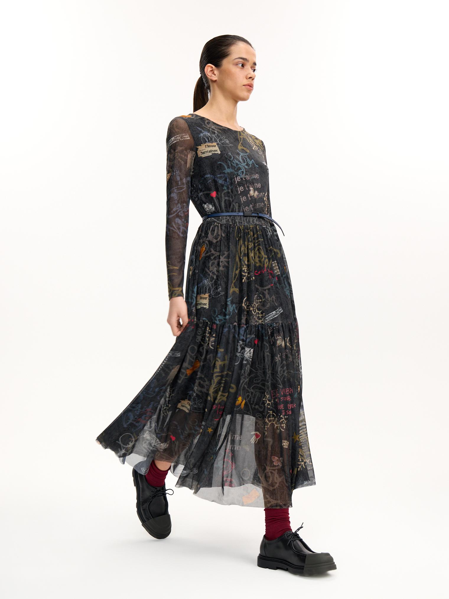 Новая вариация платья-бестселлера прошлых сезонов. Модель выполнена из нежной к телу вискозы со стрейчем и эластичной сетки-стрейч и украшена принтом, вдохновленным воспоминаниями о Париже. Облегающий верх сочетается со струящимся низом. Идеальный вариант для свидания или особого случая. Каждый экземпляр этой вещи уникален - расположение рисунка может отличаться от того, что Вы видите на фотографиях.