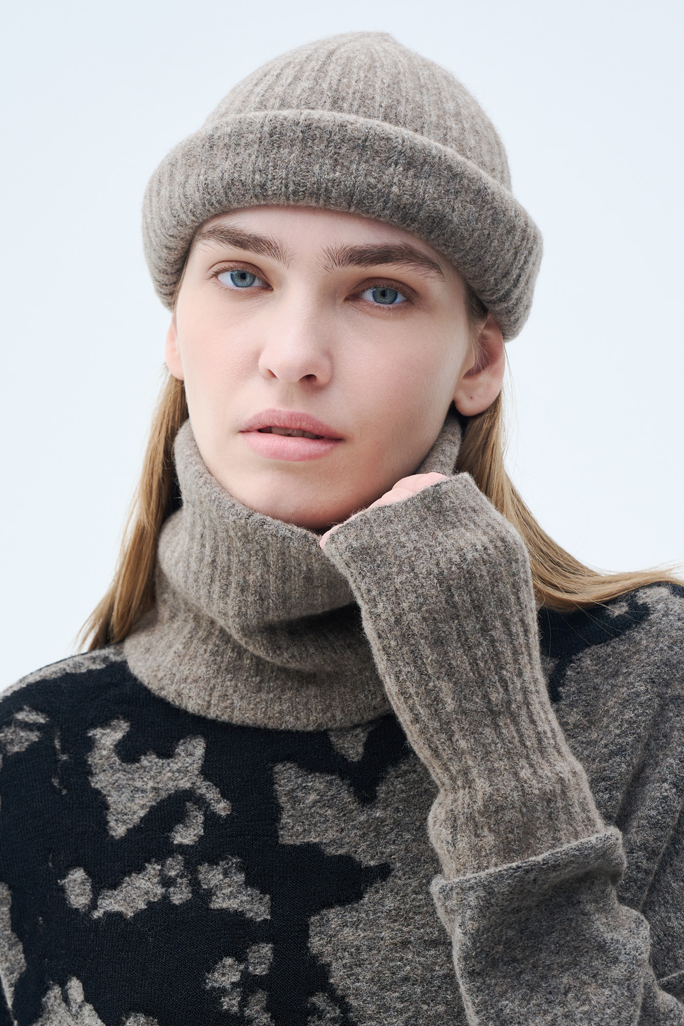Плотная, теплая цельновязаная шапка из буклированной пряжи в составе с ценной и мягкой шерстью Яка. С небольшим дополнительным объемом. Выполнена ластичным переплетением в три нити, идеальное решение для холодного времени года.