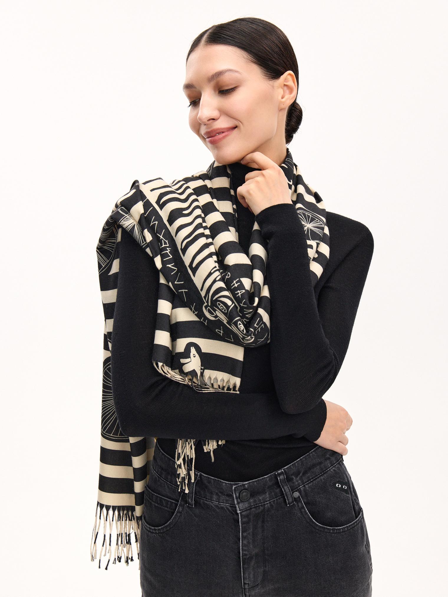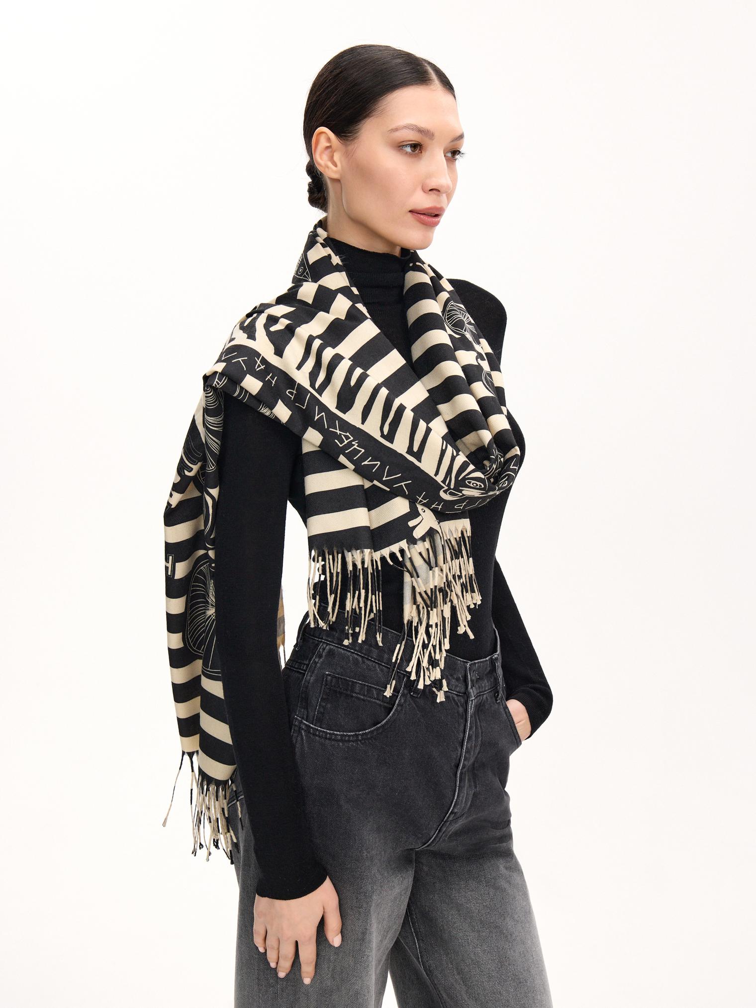 Шарф-палантин - новый аксессуар в линейке. Мягкая и тёплая модель в полоску с принтом разнообразит ваши образы.