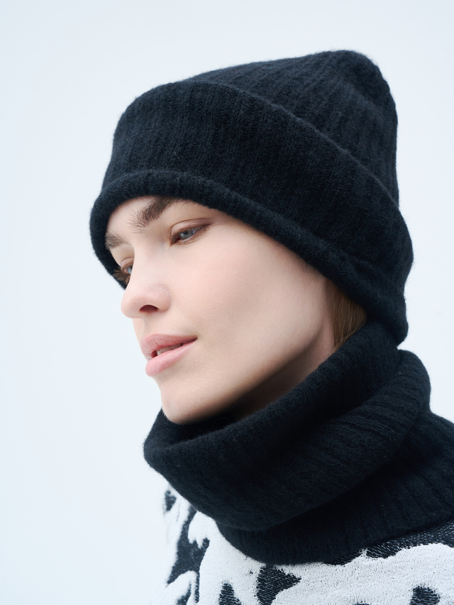 Объемный цельновязанный снуд из буклированной пряжи в составе с ценной и мягкой шерстью Яка. Выполнен ластичным переплетением. Теплый и уютный аксессуар, придающий образу завершенность или акцент.
