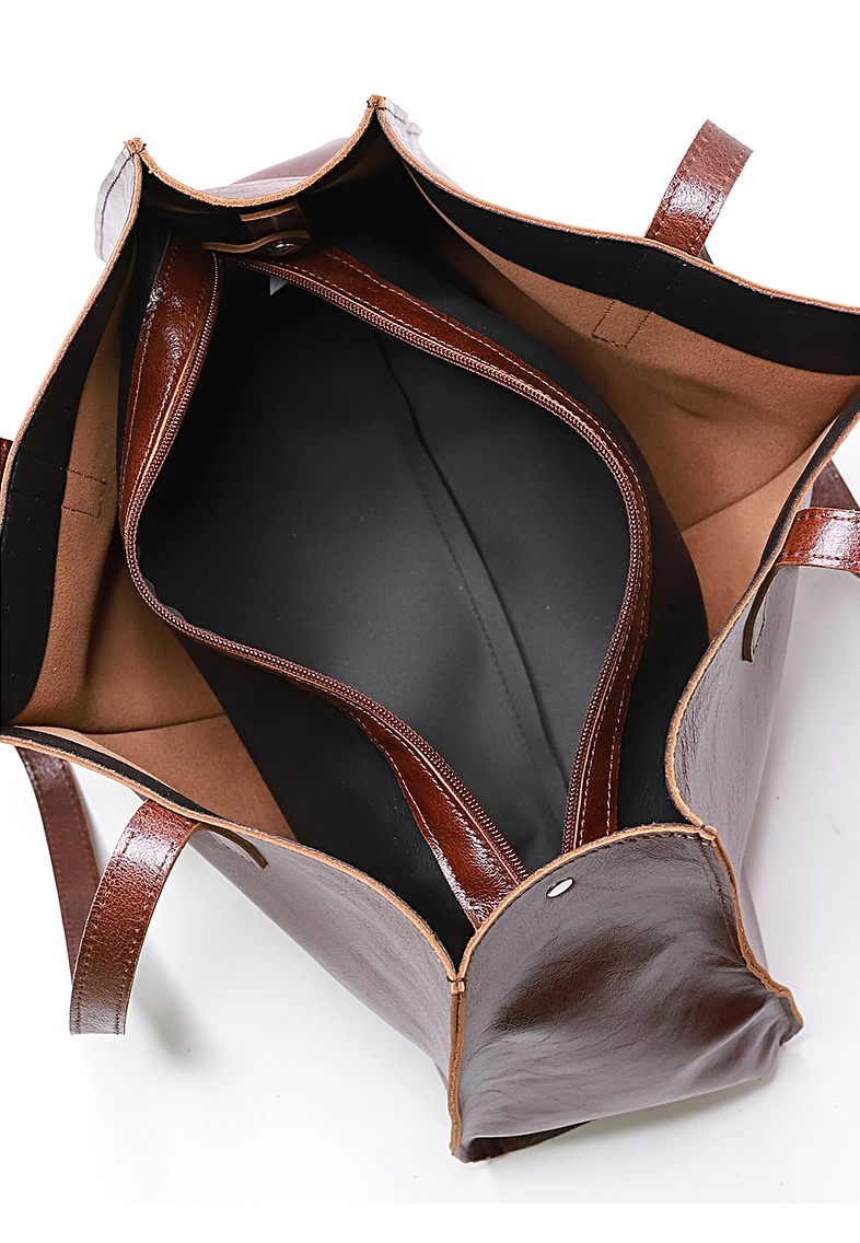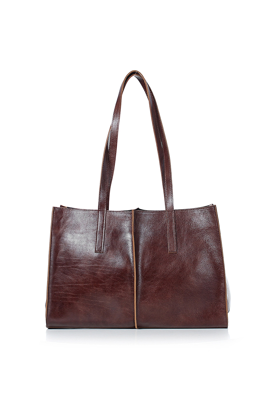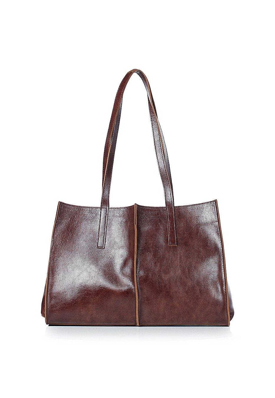 Стильная сумка-шопер рыжего цвета среднего размера. Отлично дополнит любой образ от делового до повседневного.