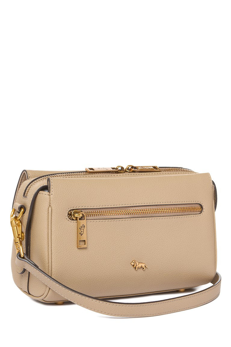 Сумка кросс-боди из натуральной кожи. Модель застегивается на молнию. Содержит внутри одно отделение, в котором имеются карман на молнии и один открытый карман для телефона. На передней стенке сумки расположен карман с клапаном, который застёгивается на замок, на задней стенке сумки карман на молнии. Максимальная длина наплечного ремня из натуральной кожи - 125 см, ширина – 1,8 см. Модель имеет ножки на дне. Не вмещает формат А4.