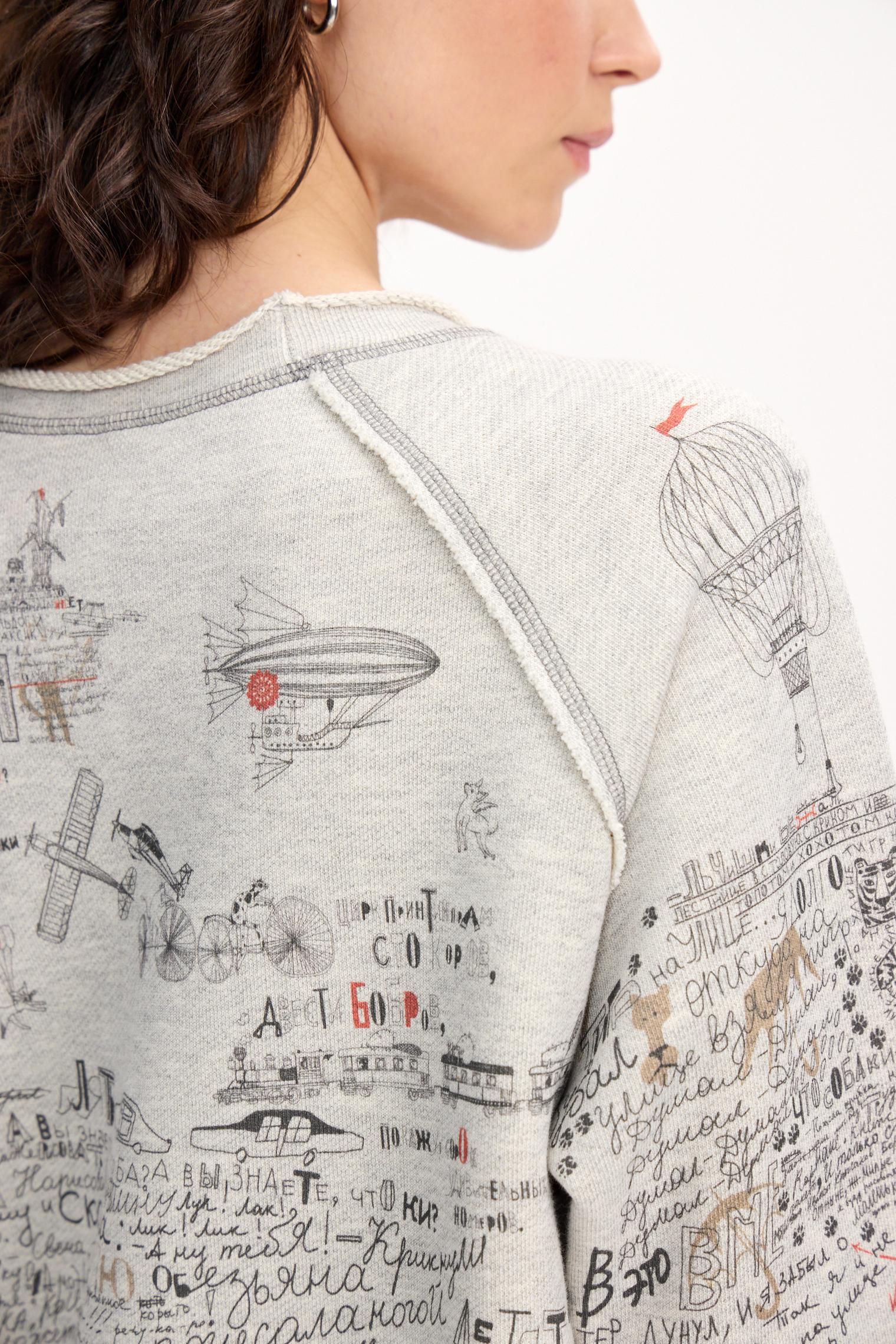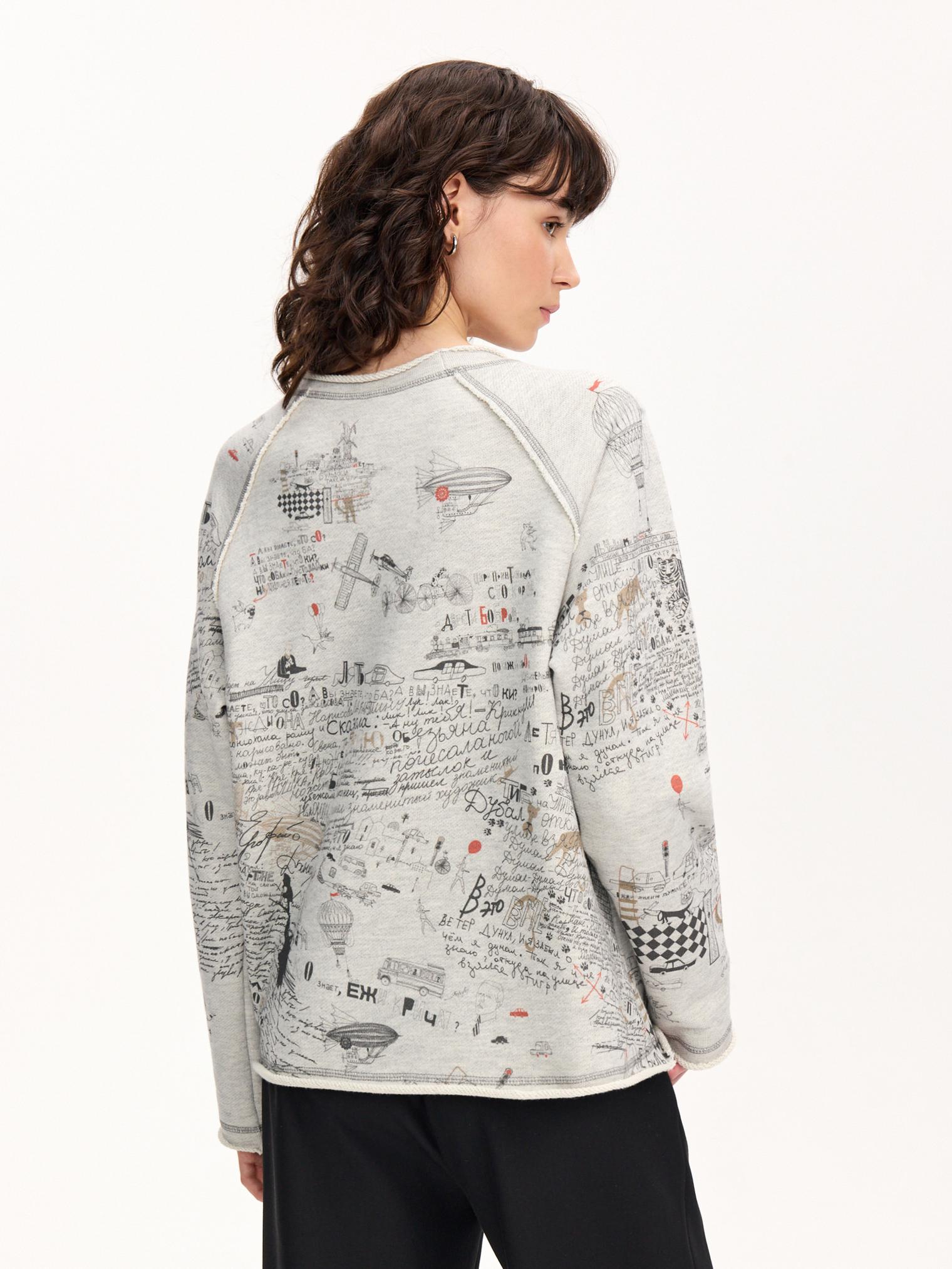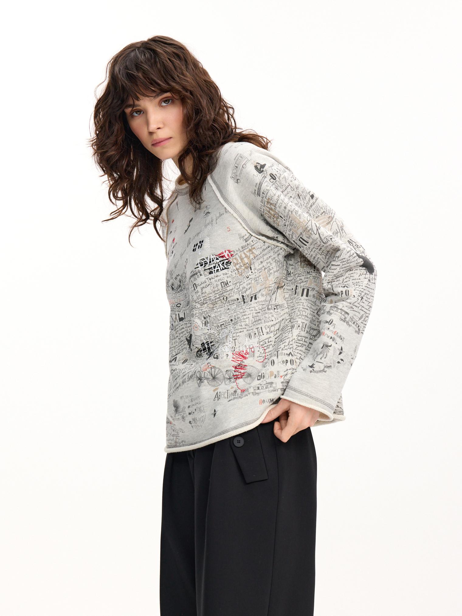 Свитшот - комфортная база любого гардероба. Модель с меланжевым эффектом из капсулы выполнена из хлопкового футера 3-нитки и украшена контрастным принтом. Обратите внимание, как принт совмещается с вышивками.