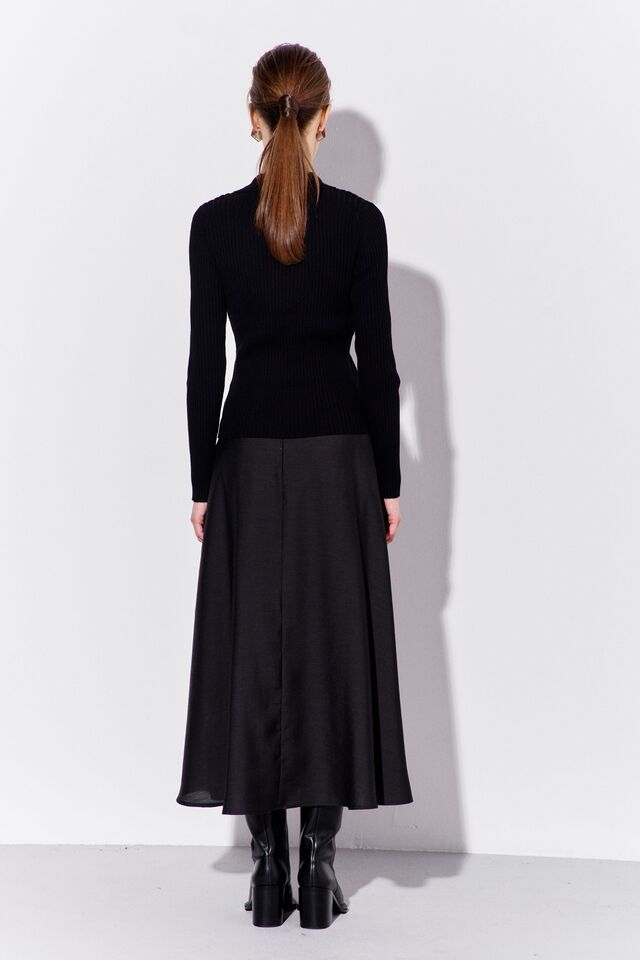 Юбка женская, из плательной ткани, на обтачке, расширенная к низу, с застежкой на потайную молнию, расположенную в среднем шве юбки. Заднее полотнище юбки со средним швом. Юбка на подкладке.
