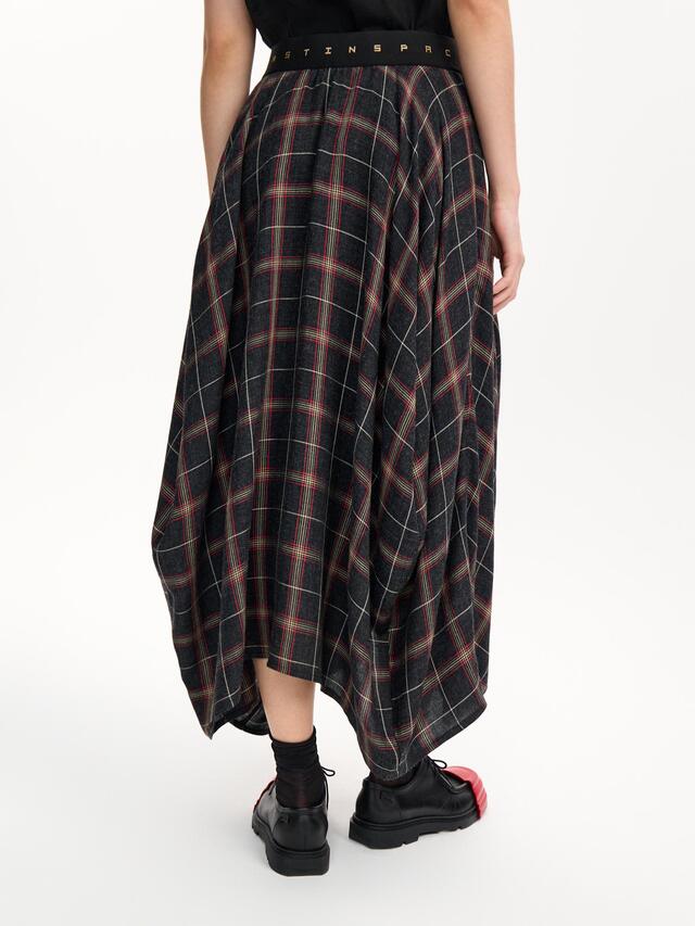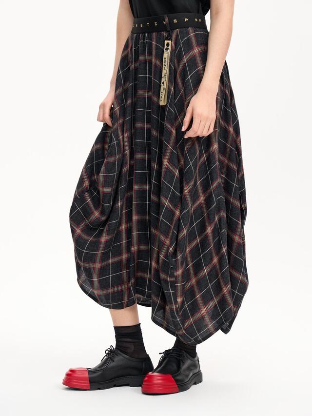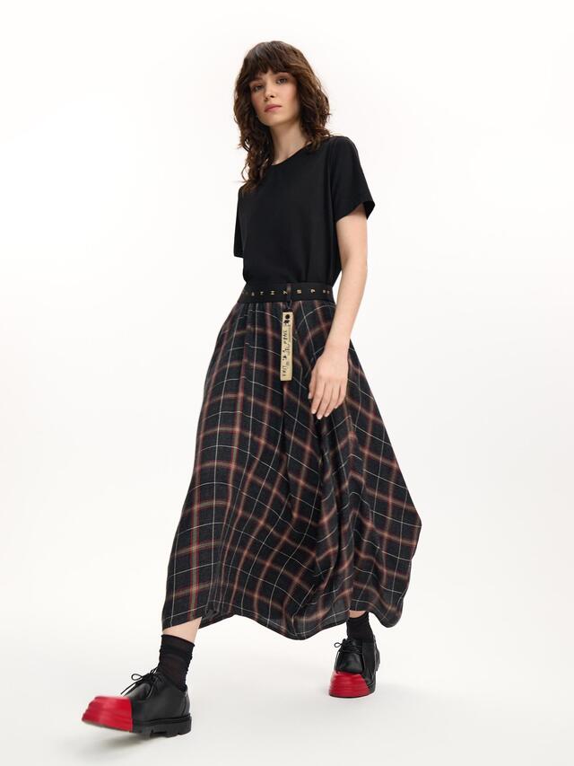 Добавьте немного гранжевого настроения образу с этой юбкой оригинального кроя. Мягкая, приятная на ощупь ткань в крупную клетку еще больше усиливает бунтарский эффект. Пояс на эластичной брендированной резинке добавляет образу всегда актуальной в XXI веке расслабленности.