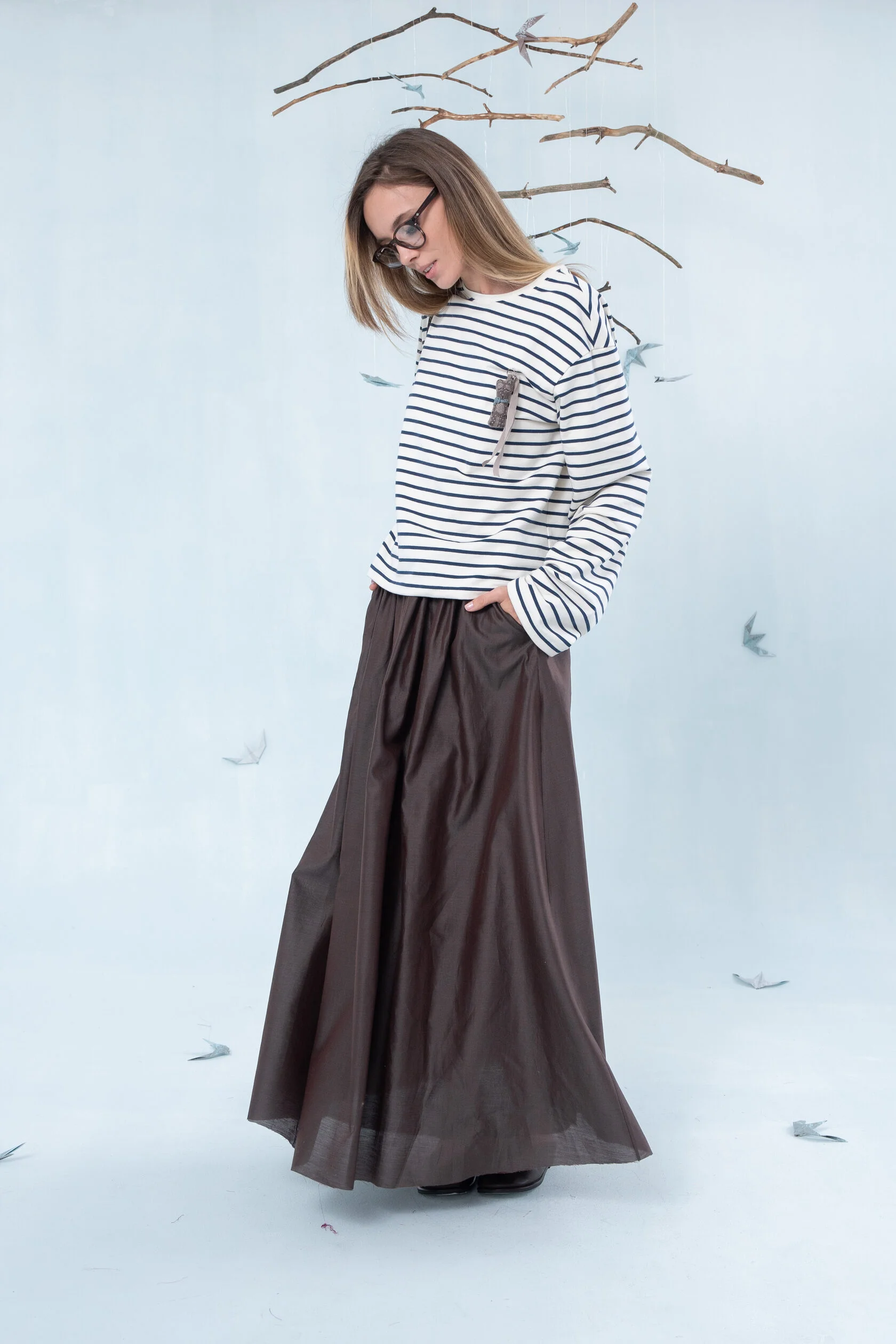 Оригинальная юбка шоколадного оттенка из тончайшего хлопка с шелком.