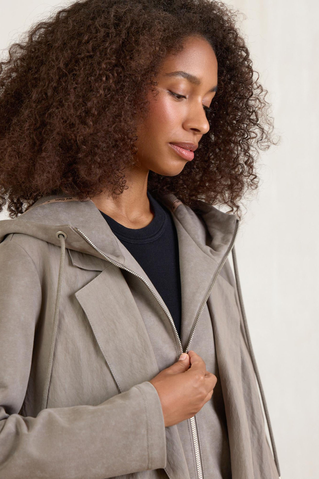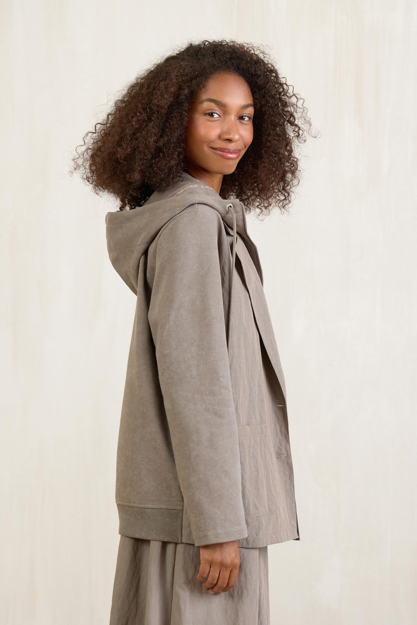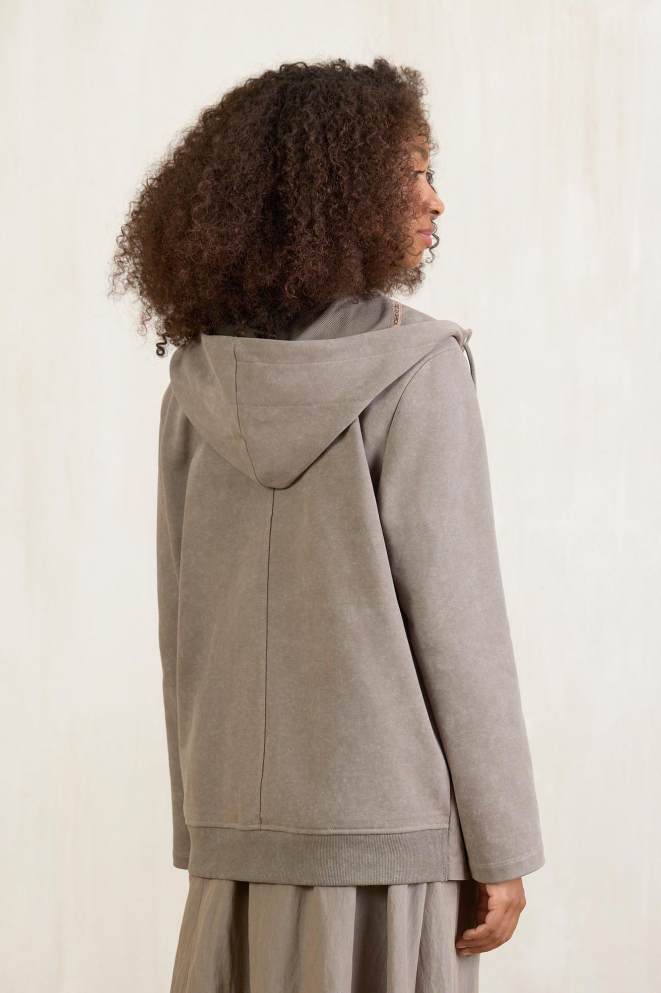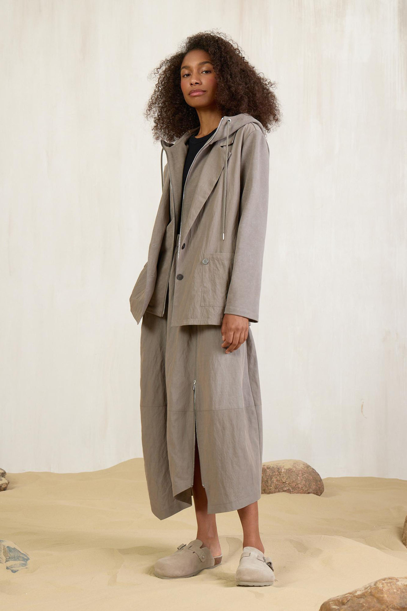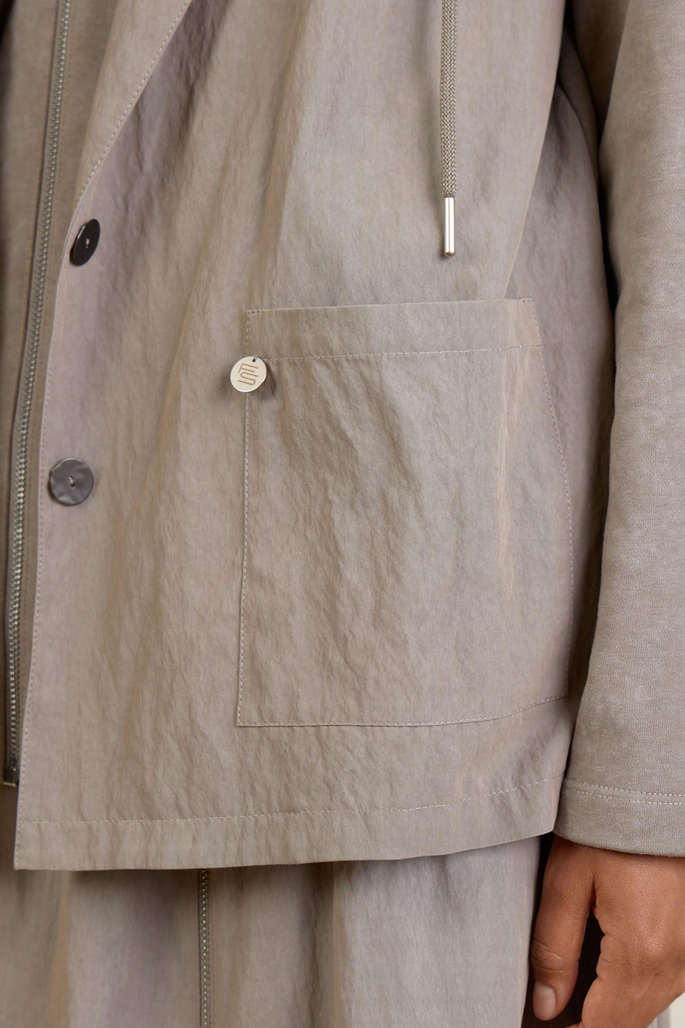 Универсальный жакет разбеленного оттенка хаки – это любовь! Модель имитирует двуслойность: классический пиджачный крой сочетается с элементами худи. Душевно подобранная фурнитура расставляет аккуратные акценты.