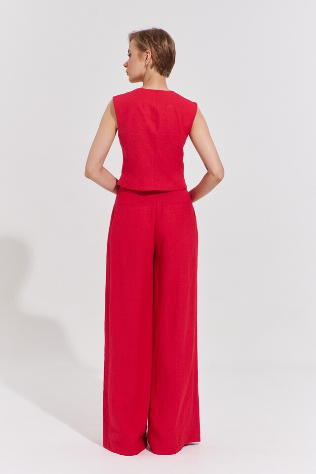 Жилет женский, из костюмно-плательной ткани, полуприлегающего силуэта с центральной застежкой на четыре петли и пуговицы.